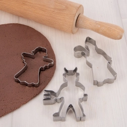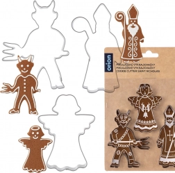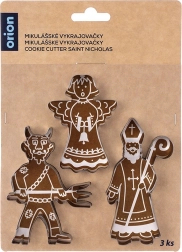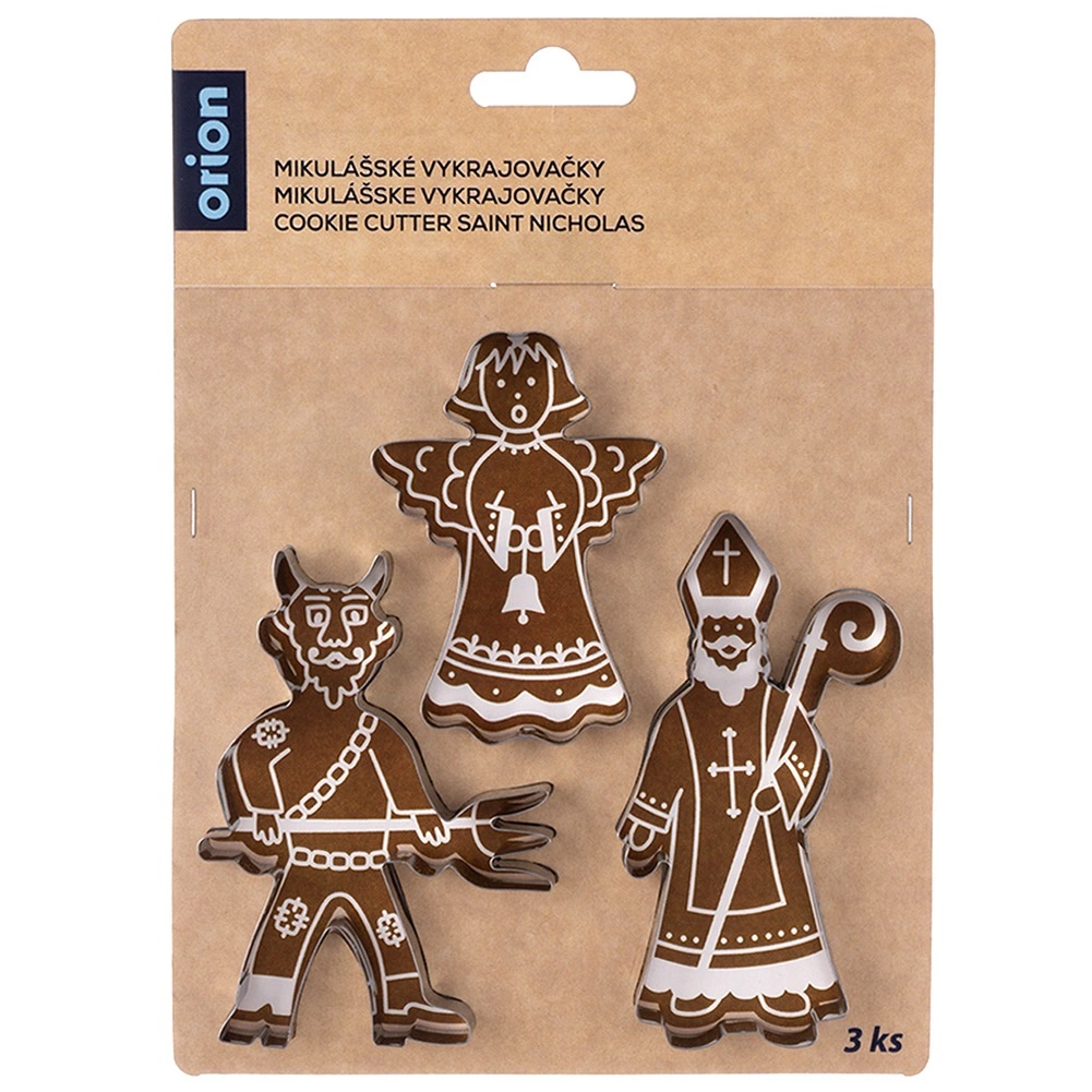 Discover a festive set of three stainless steel cookie cutters in the shapes of an angel, a devil, and Saint Nicholas. Ideal for Christmas gingerbread, cookies, and fondant decorations. They are durable, easy to clean, and dishwasher safe – the perfect helper for creative baking during the winter and holiday season.