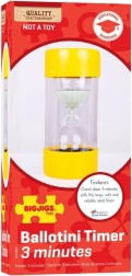 The sand timer measures exactly three minutes, ideal for short tasks and activities.