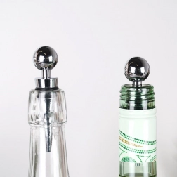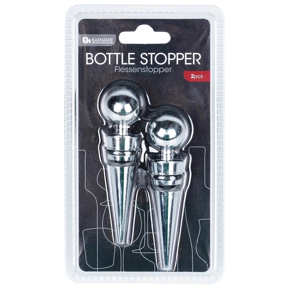 Keep your favorite drinks fresh for longer. This set of two stoppers made of chrome-plated stainless steel with two silicone sealing rings reliably seals the bottle neck and prevents oxidation and the loss of carbonation. The spherical head ensures comfortable application and removal in a single motion.