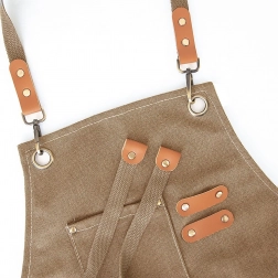 The thoughtful design with cross-back straps distributes weight evenly and keeps the apron securely in place. The front double pocket and smaller compartment hold kitchen or work essentials, while two loops are ideal for a pen or tool.