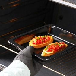 The 5 cm rim retains juices and sauces, so you can bake lasagna, baked pasta, and juicy meats without worrying about spills.