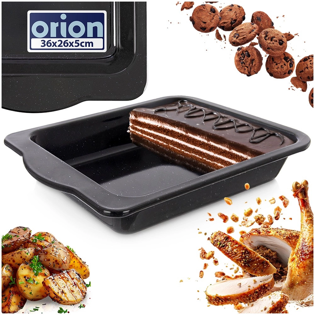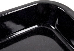 Practical enamelled baking tray with dimensions 36 × 26 × 5 cm (outer) and 29.5 × 23 × 5 cm (inner) is ideal for everyday baking of both sweet and savory dishes. Durable steel with an enamelled surface ensures long service life, easy cleaning, and better release of baked foods. The high rim provides safe baking of semi-liquid dishes without spilling, and the tray is suitable for electric and gas ovens as well as the dishwasher.
