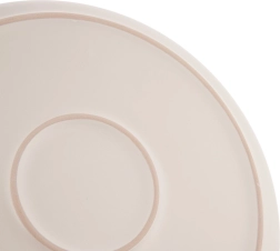A minimalist silhouette with a gently raised rim and a matte cream finish elevates any table setting.