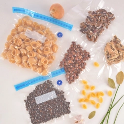 Durable, thick BPA-free film protects against odor transfer and freezer burn. The bags can be washed and reused; they are suitable for the fridge, freezer, and short-term heating within -20 °C to +110 °C. The package also includes 2 plastic sliders for convenient closing.