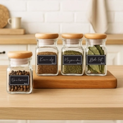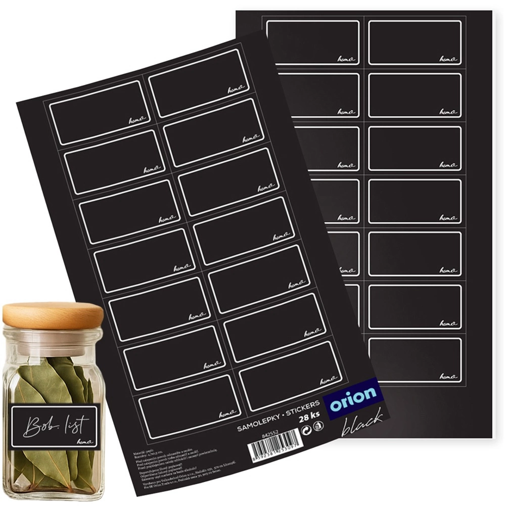A practical set of 28 self-adhesive labels in elegant black for clear labeling of pantry staples. Easy application without extra glue, ideal for jars, bottles, and containers. Each label has space for a name, ingredients, or date, helping you keep better order in the pantry and kitchen cabinets.