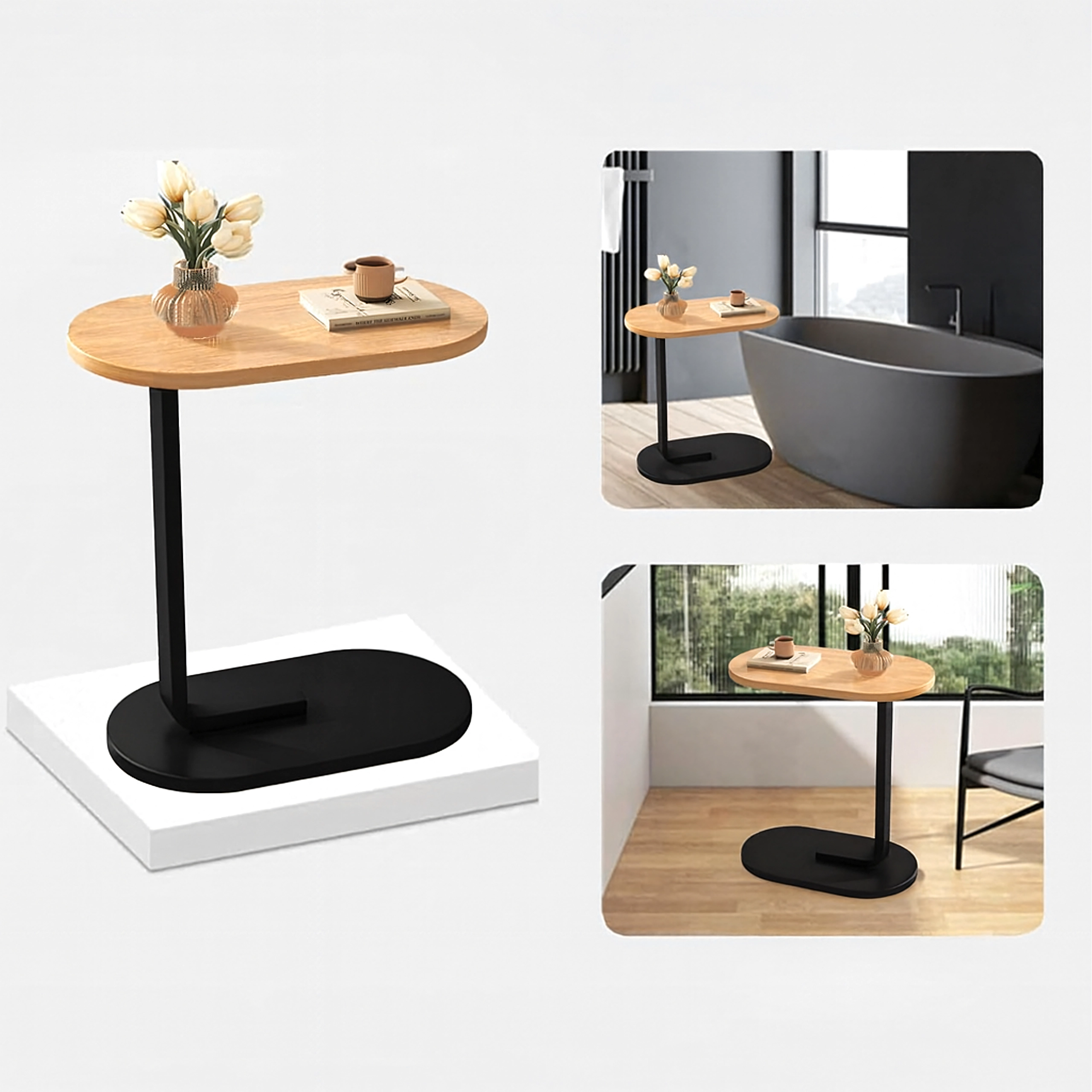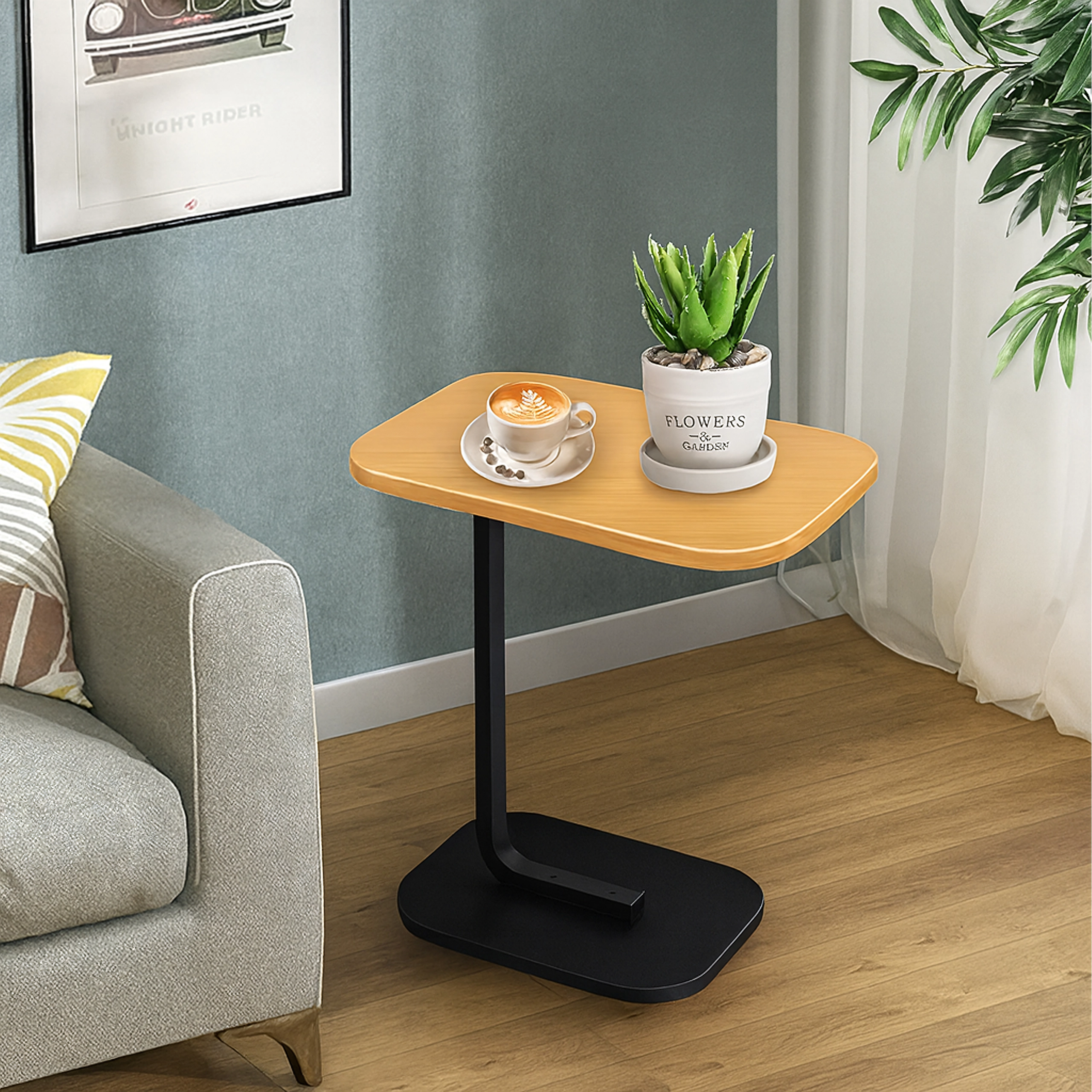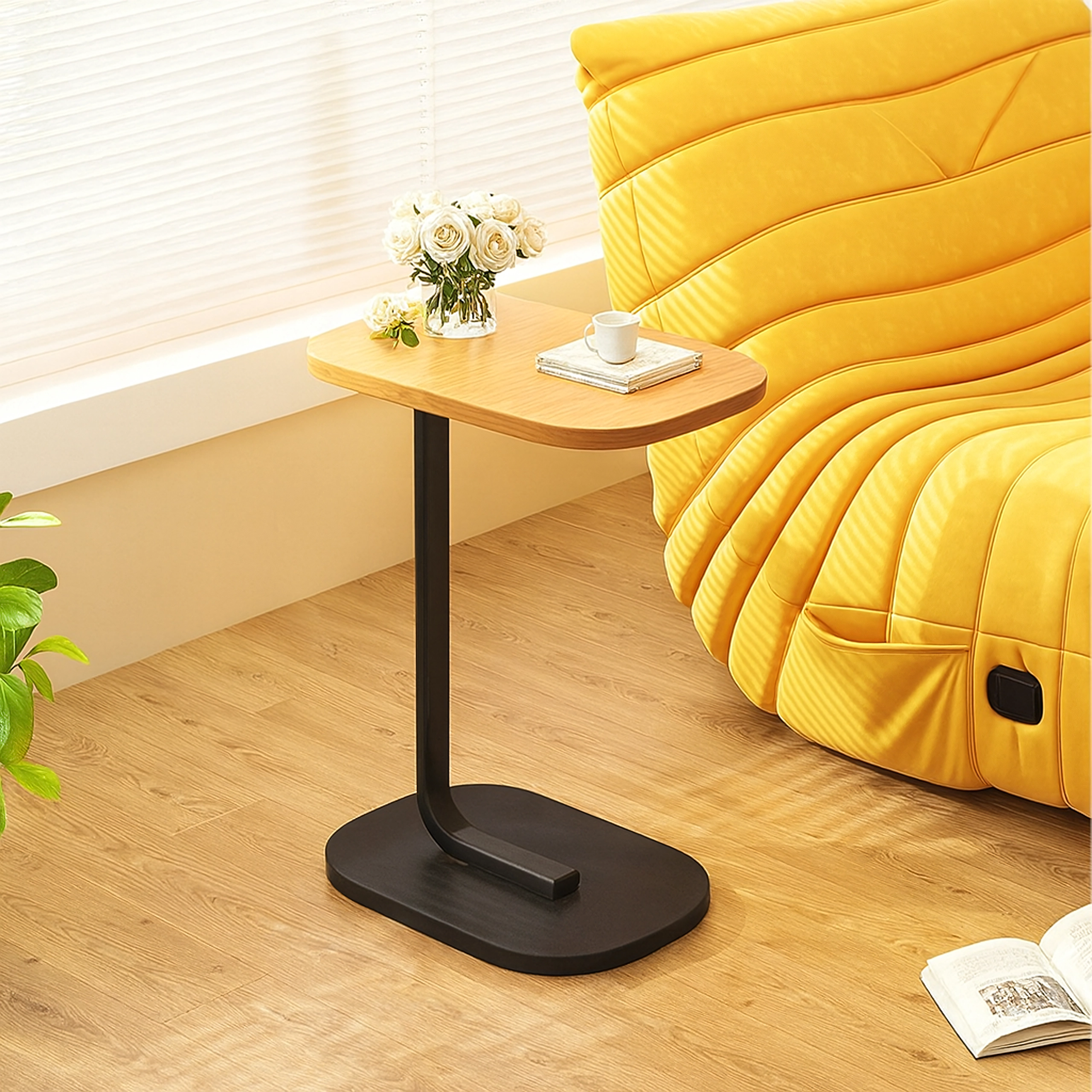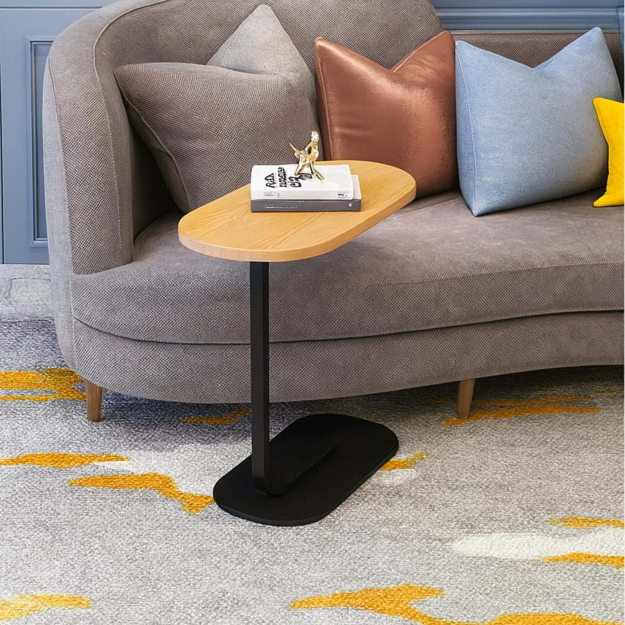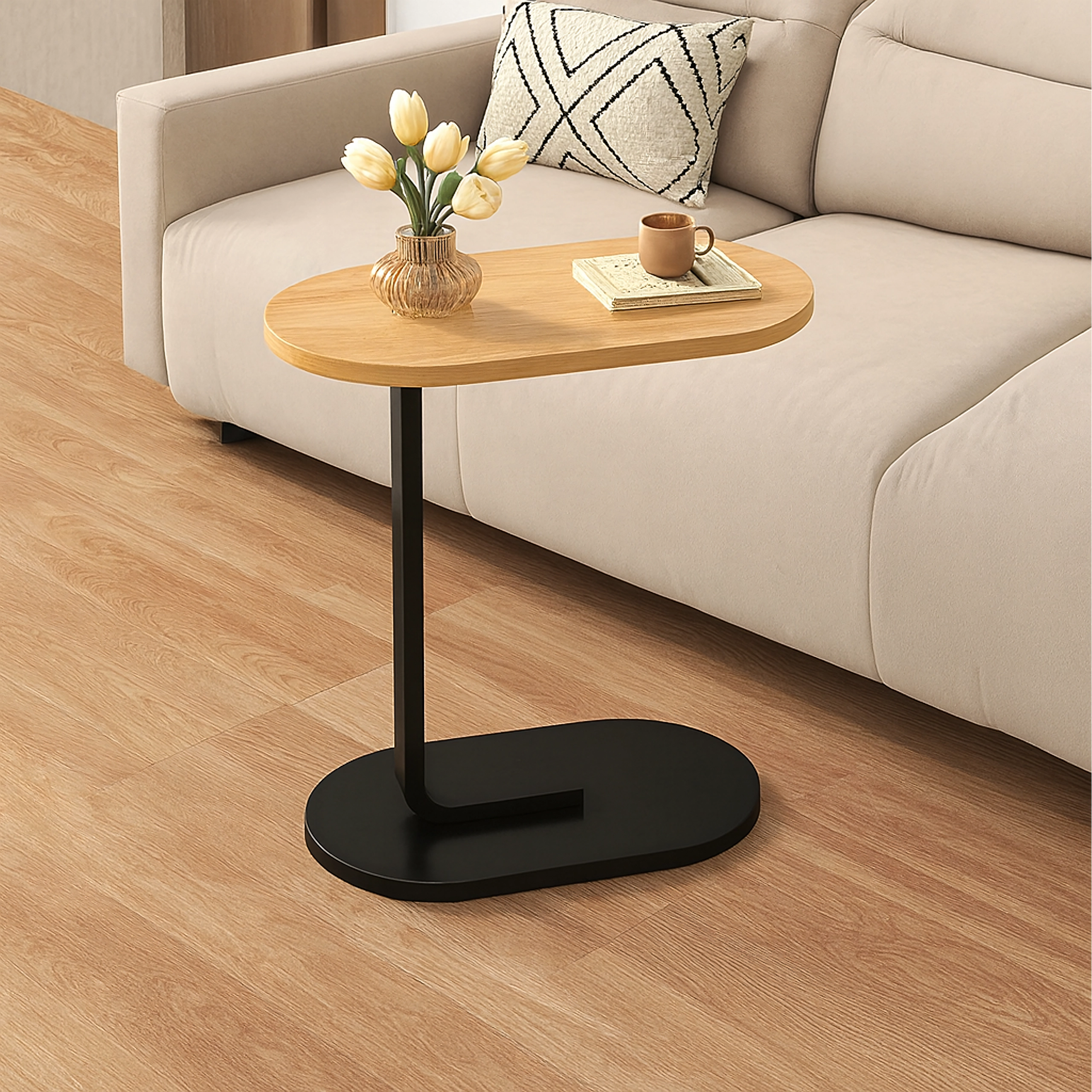 The elegant C-frame table combines a light wood-look top with a durable black metal structure. It’s ideal as a side table by the sofa, a bedside table, or a mobile base for working on a laptop. Thanks to its slim underbase, you can slide it under furniture to save space.
