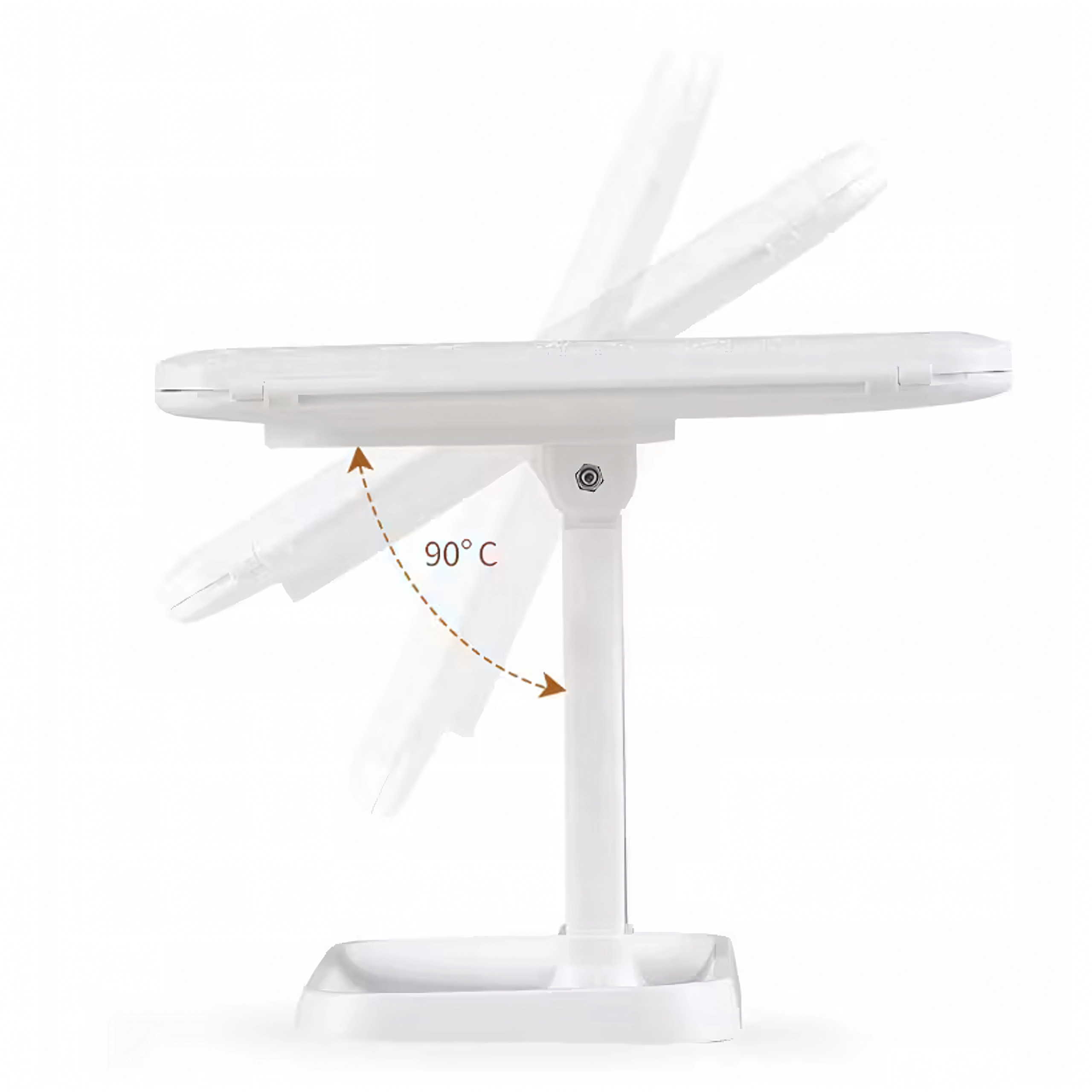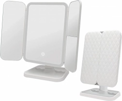 Thanks to the touch sensor, you can easily switch between 3 color temperatures (cool/warm/neutral) and adjust brightness to your environment. The mirror is folding and rotatable, saving space, protecting surfaces during transport, and allowing the ideal angle for every task.