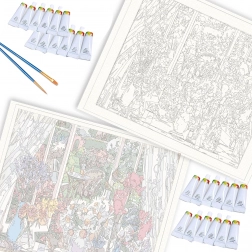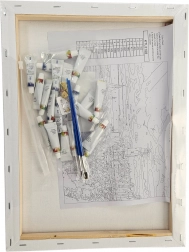 - Complete set – 30 × 40 cm pre-printed canvas, acrylic paints, brushes