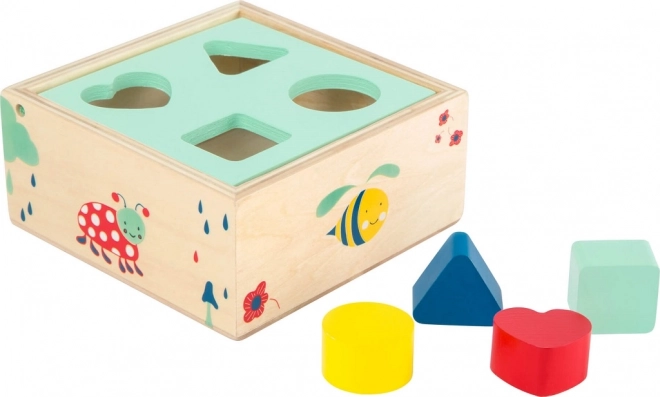 This motor skills shape sorter from small foot develops fine motor skills, hand–eye coordination, and logical thinking for children from 12 months. The combination of natural and colored wood together with forest animal illustrations is eye-catching and invites play.