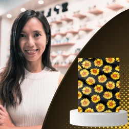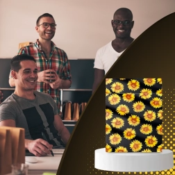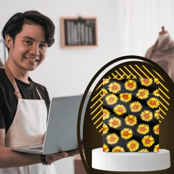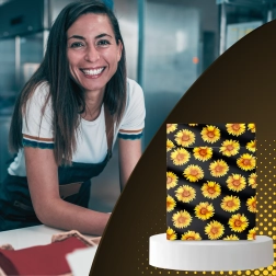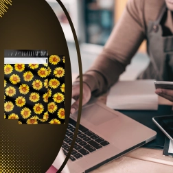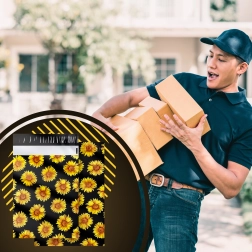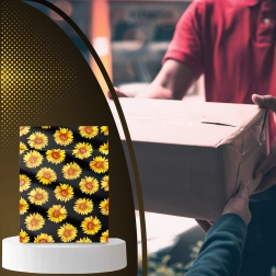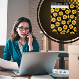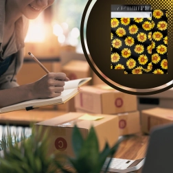 The stylish sunflower print on a black background enhances the customer experience and turns every shipment into a small gift.