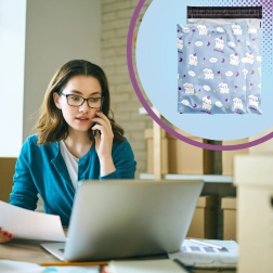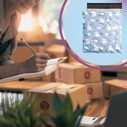 A playful blue motif with dogs and clouds adds personality to your packages and supports your shop’s image.