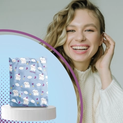 - Stylish design: blue print with dogs and clouds impresses customers.