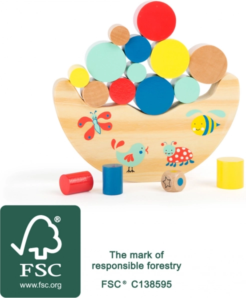 Try to build the highest tower with this motor skills toy made from 100% FSC® certified wood. Perfect for developing fine motor skills and natural curiosity in children.
