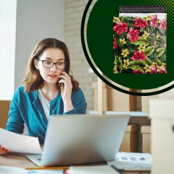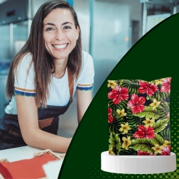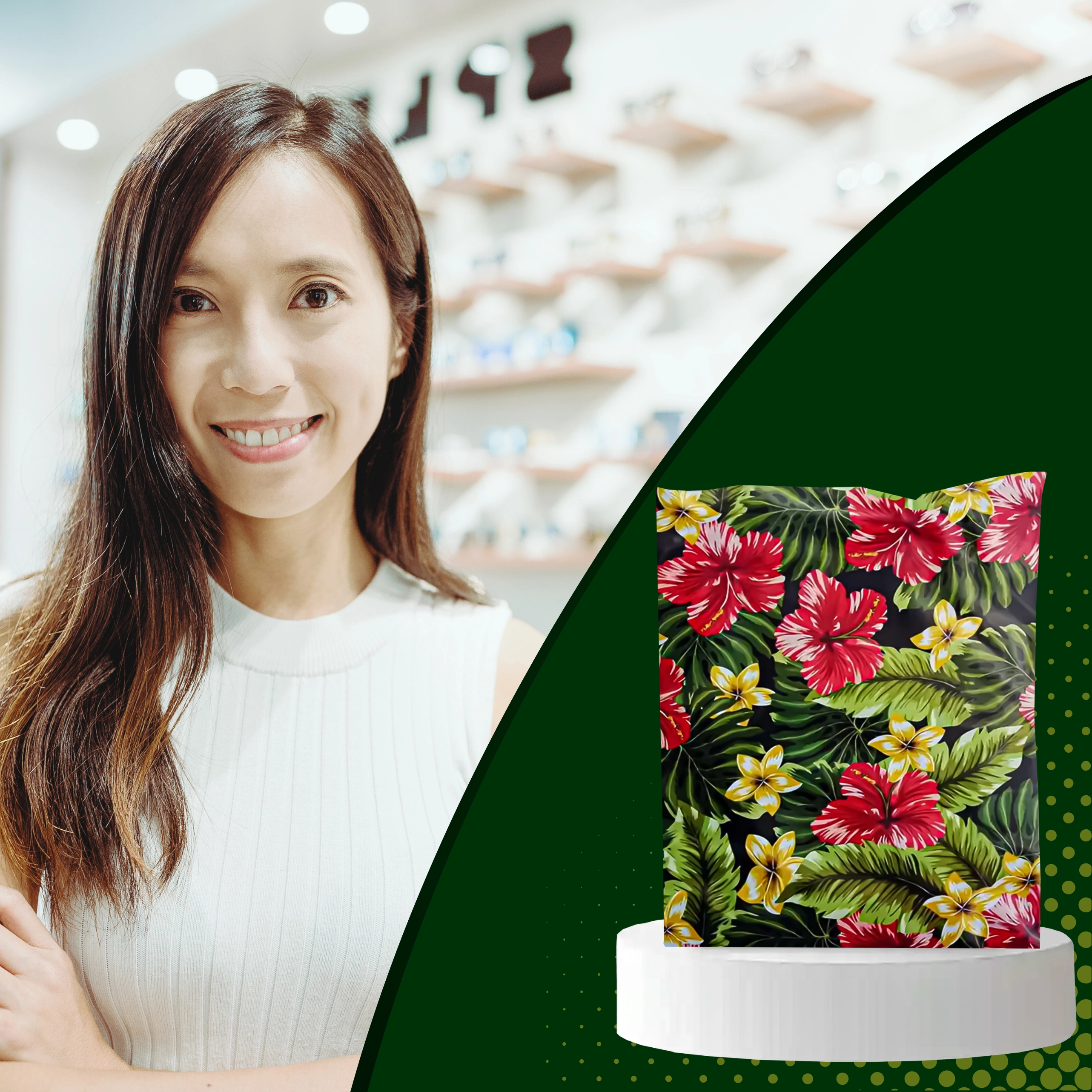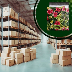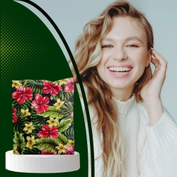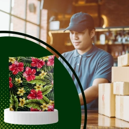 Eye-catching prints of hibiscus and plumeria on a black background enhance the unboxing experience and support brand recall.