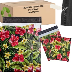 Practical and stylish mailing envelopes made of durable film, size 255 × 370 mm, in a pack of 50. They feature self-adhesive sealing, tear and moisture resistance, and a striking tropical floral design that catches the eye while reliably protecting lighter shipments.