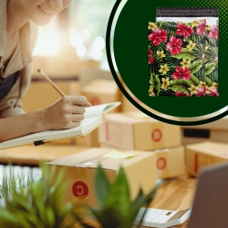 Thanks to the 255 × 370 mm format, you can easily pack small and medium products. The self-adhesive strip shortens packing time and ensures the envelope reveals any attempt to open it after sealing. The attractive design with hibiscus and plumeria also elevates your brand presentation upon delivery.