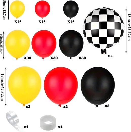 The racing and checkered-flag balloon garland transforms any space into a dynamic race track. The set includes everything you need for quick and easy assembly of a decoration that impresses guests the moment they arrive. Ideal for birthdays, themed parties, school events, and family celebrations.