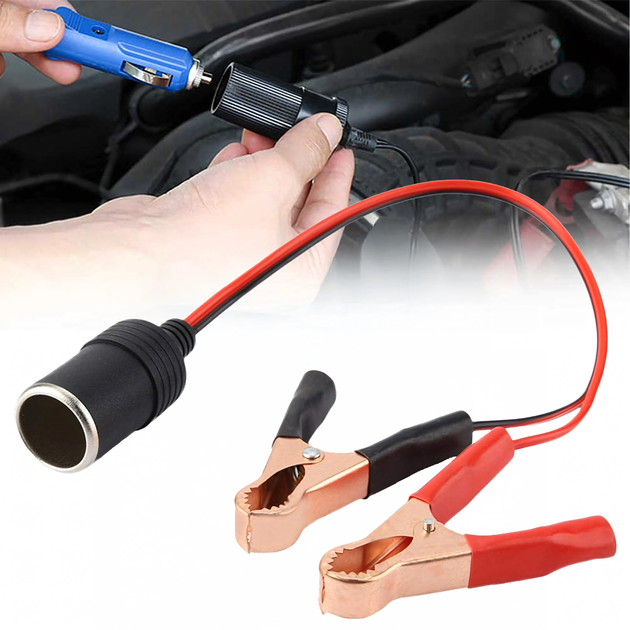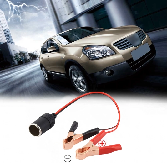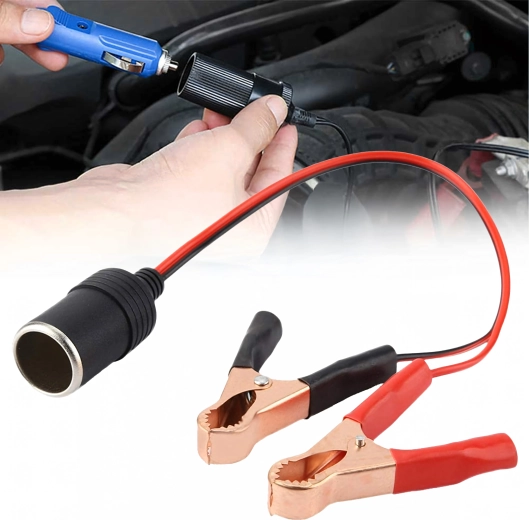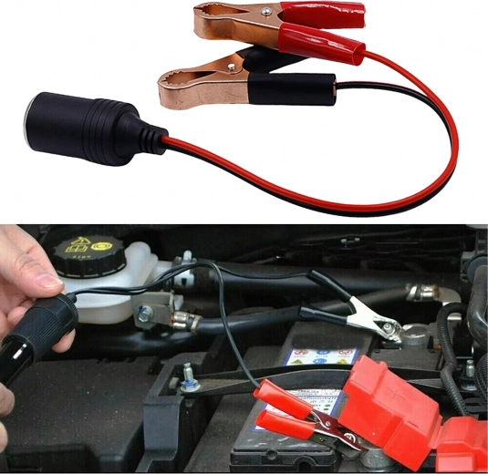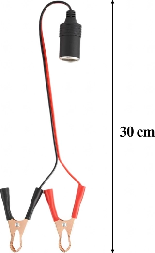 Practical 12/24 V car socket adapter with crocodile clips for quick and safe power supply to devices in a car, caravan, or truck. Ideal for pumps, fridges, chargers, and other accessories. A compact and universal solution for travel and off-road use, always at hand and ready to use.