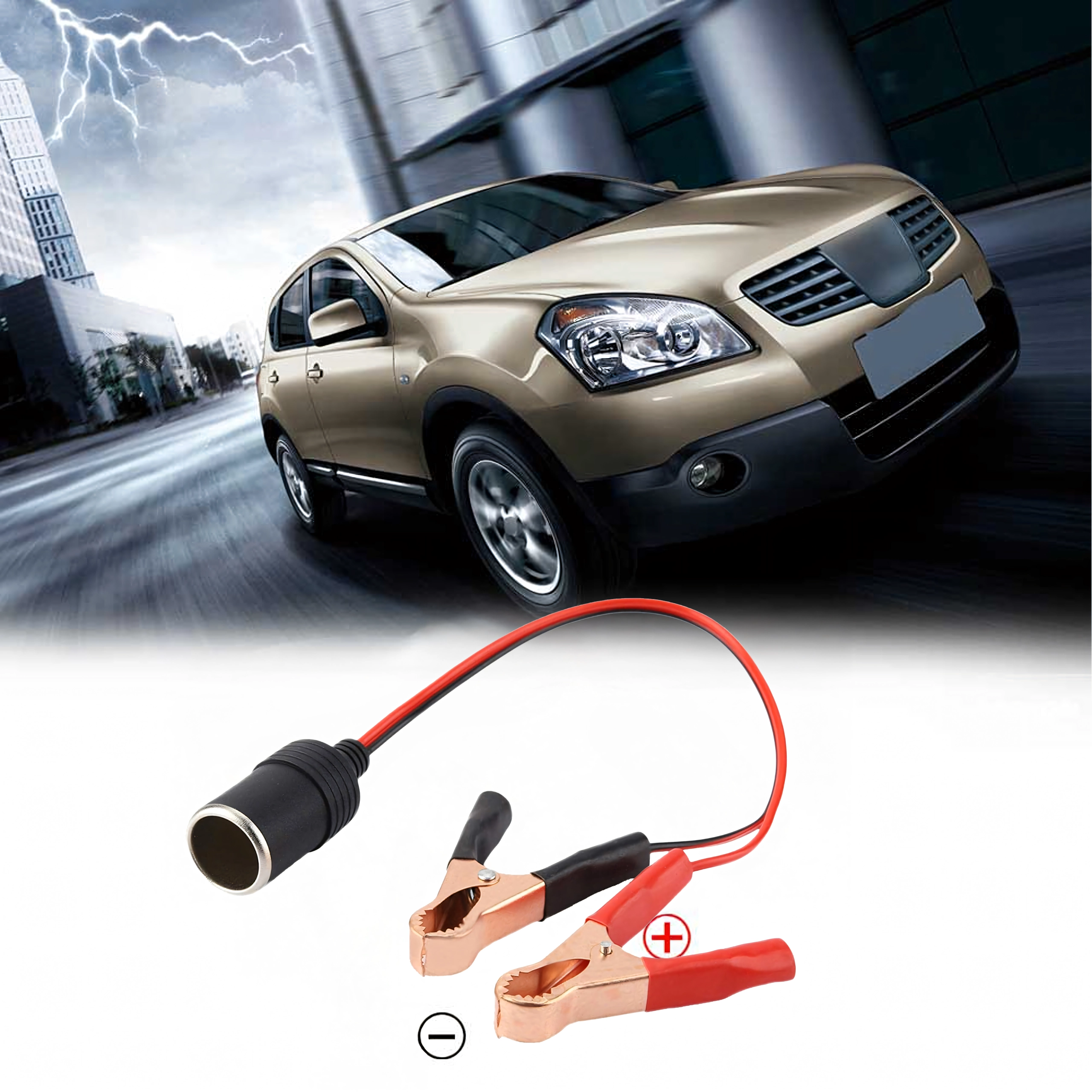 The cigarette lighter socket adapter with crocodile clips bridges power directly from the vehicle’s 12/24 V system. Thanks to sturdy clips, it provides quick connection to the battery or devices with bare terminals and ensures a reliable power transfer without complex installation.