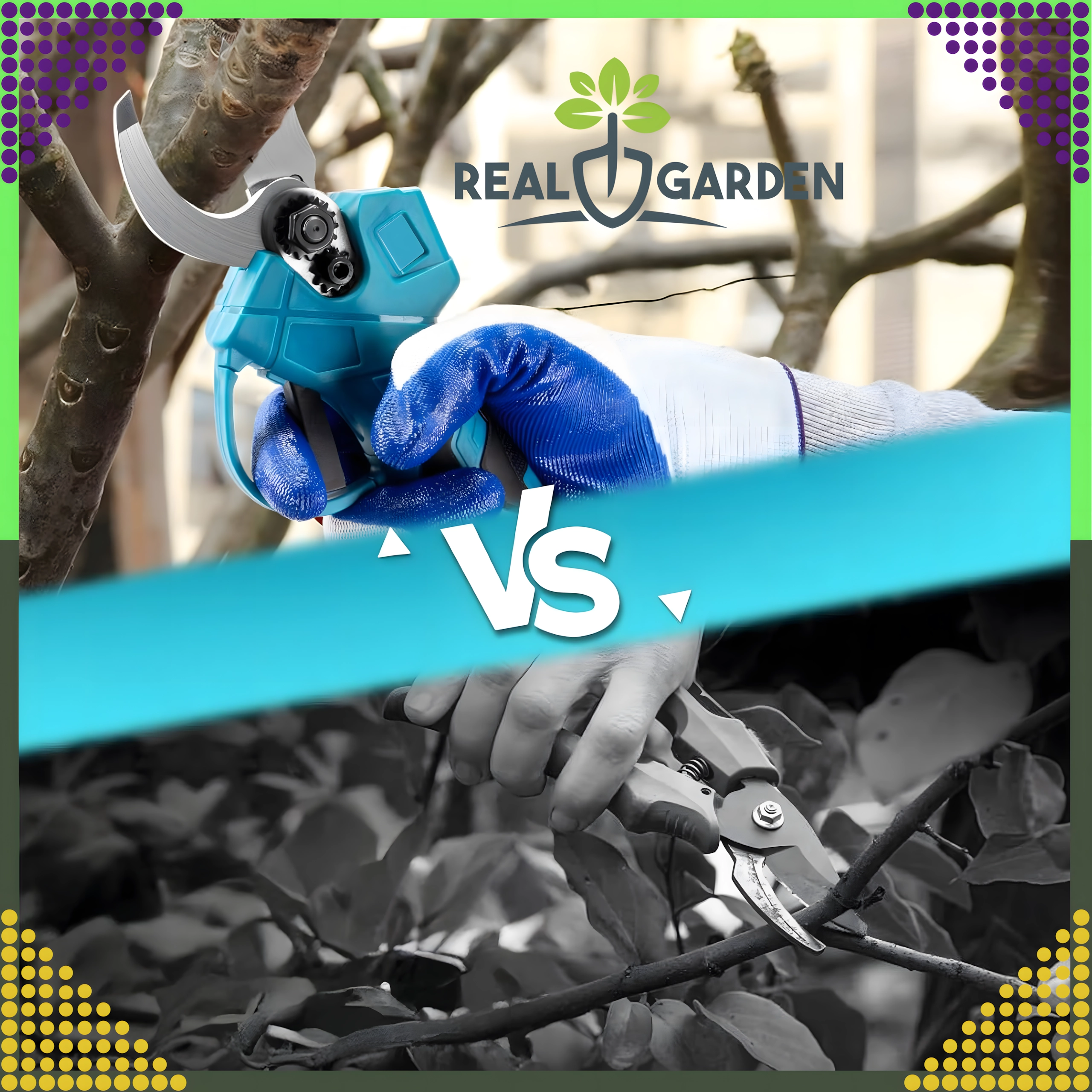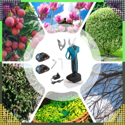 Electric cordless pruning shears for branches and shrubs with two batteries