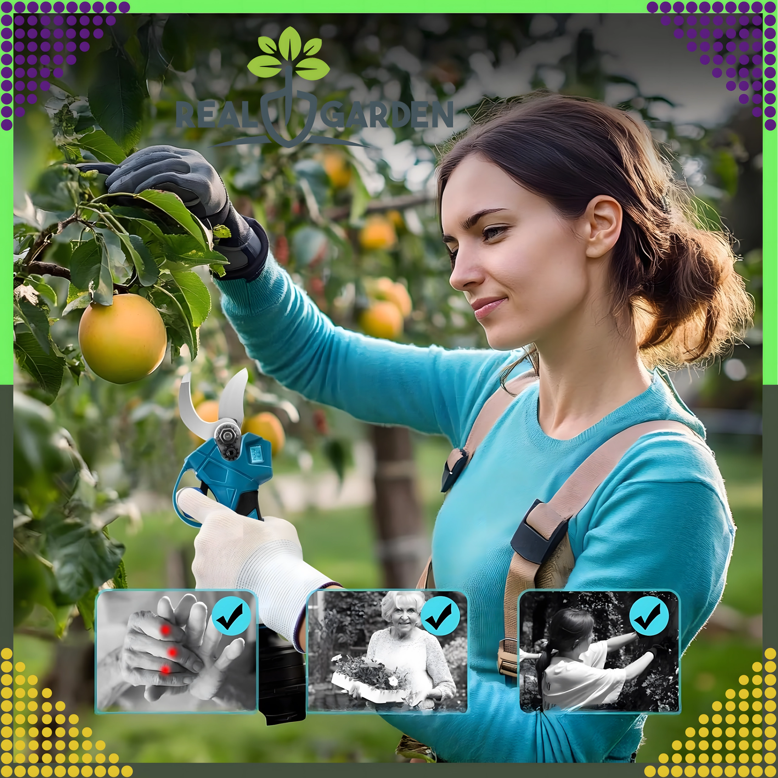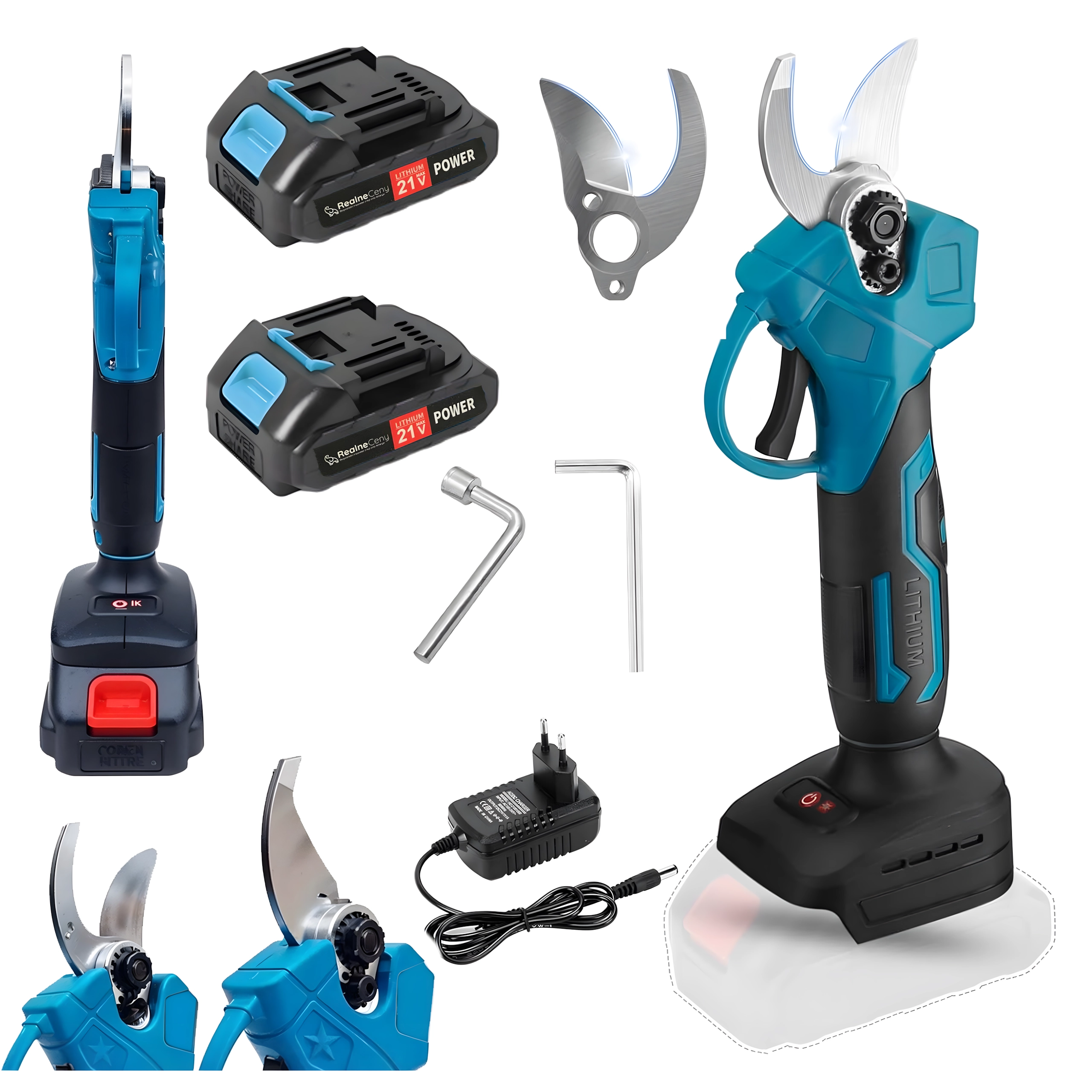 Enjoy comfortable and efficient cutting without cables. This cordless pruner combines a sharp SK5 blade, a strong brushless motor, and a pair of batteries for long runtime and consistent performance. Ideal for maintaining fruit trees, shrubs, and ornamental wood species.