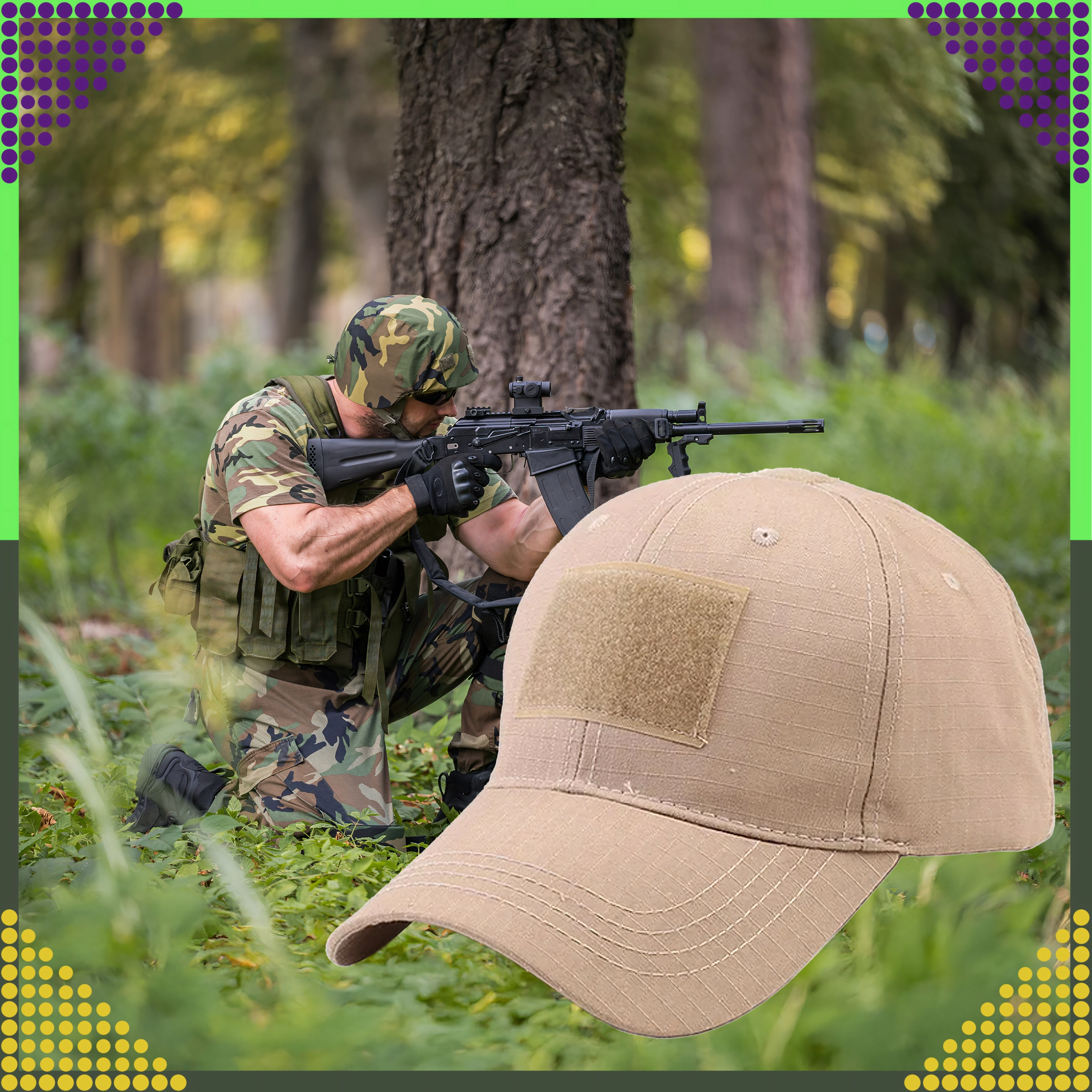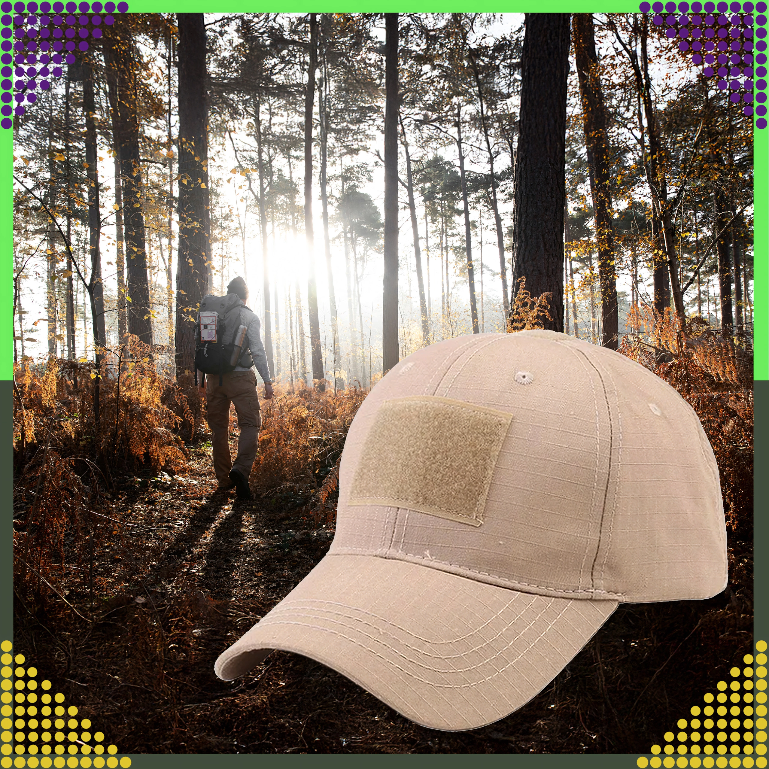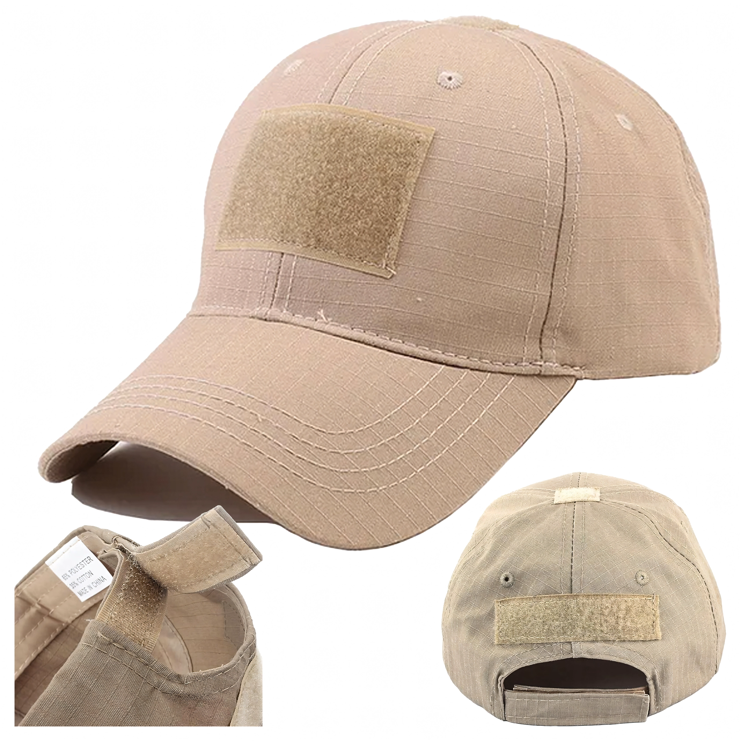 Lightweight and durable tactical cap made from ripstop material with velcro panels for personalization. Offers quick size adjustment, is breathable, and compatible with hearing protection and other headgear. Ideal for hiking, camping, fishing, and everyday wear.