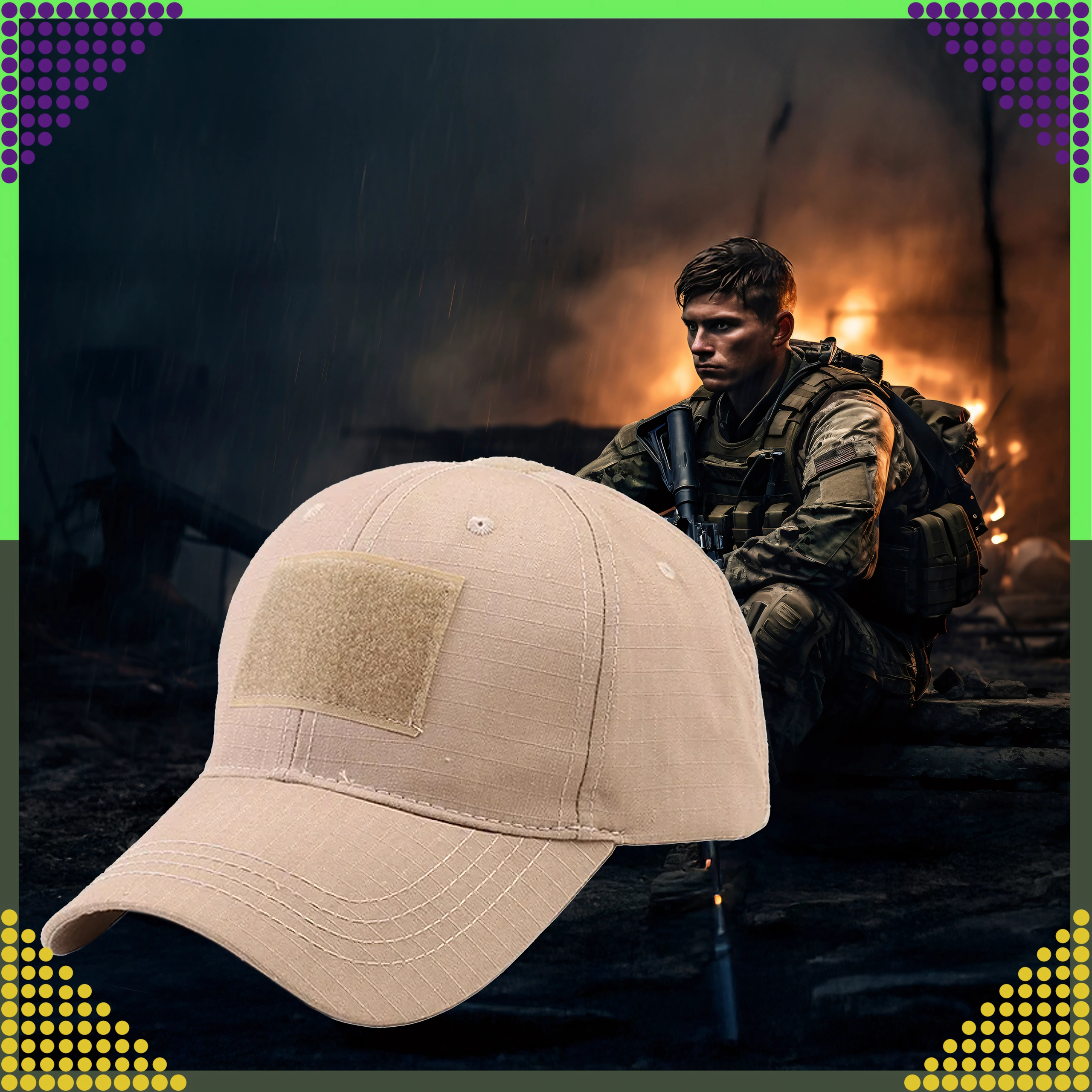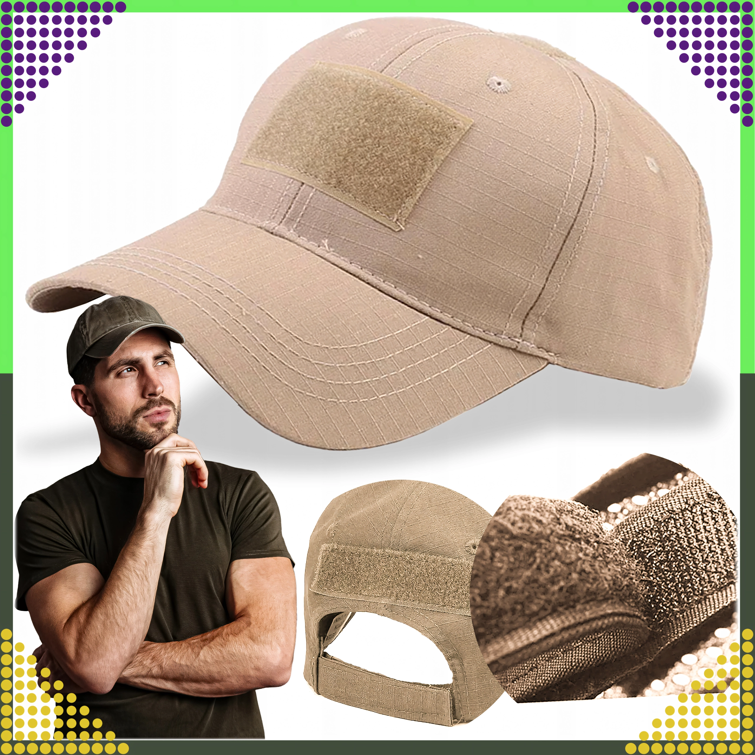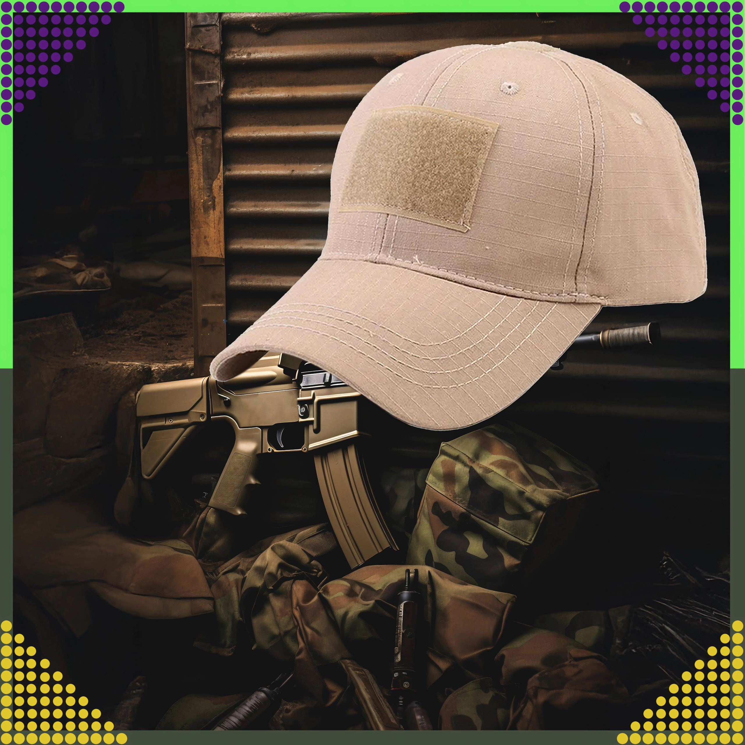 Lightweight and durable tactical cap made from ripstop material with velcro panels for personalization. Offers quick size adjustment, is breathable, and compatible with hearing protection and other headgear. Ideal for hiking, camping, fishing, and everyday wear.