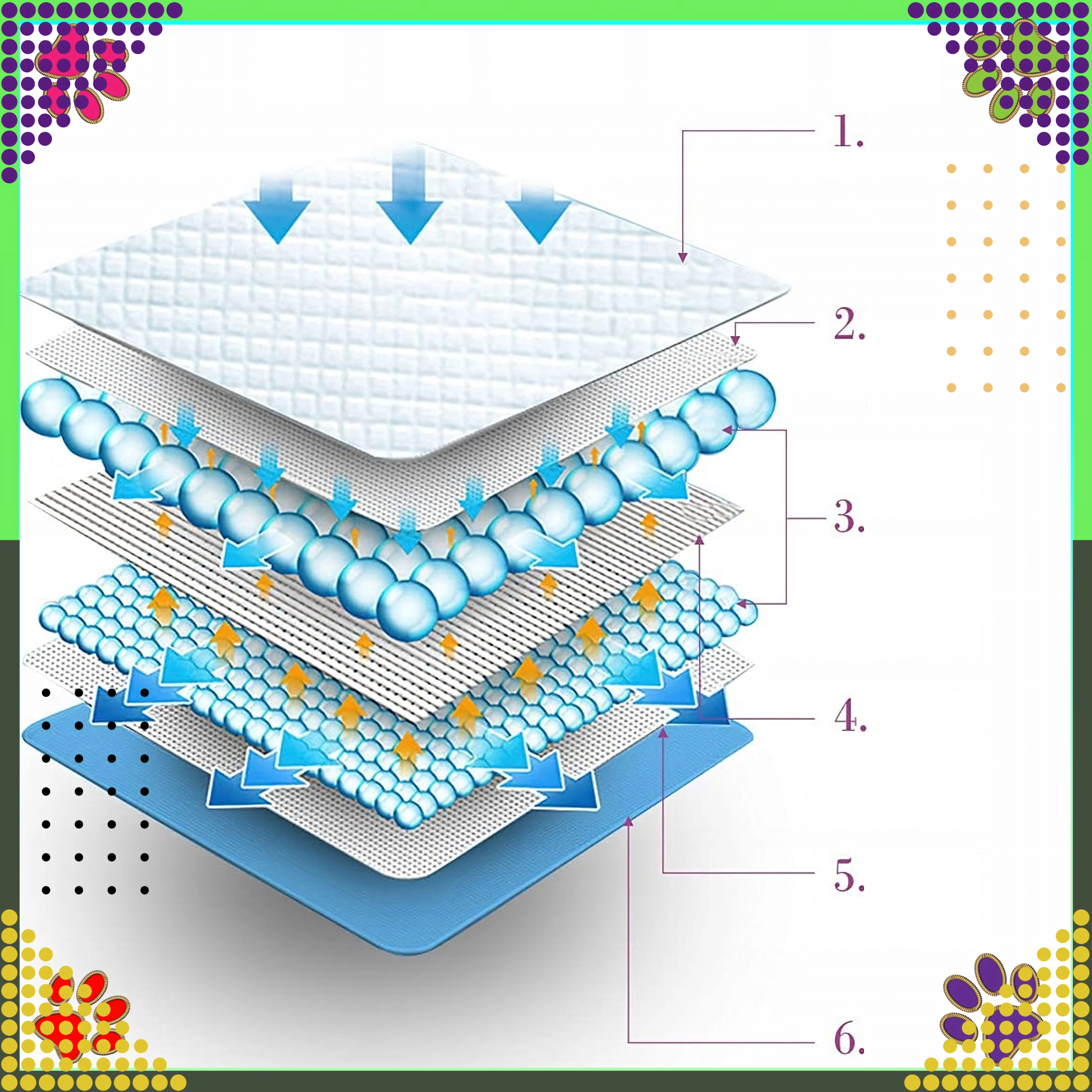 The multi-layer core instantly disperses and locks in moisture, while the impermeable bottom layer prevents seepage. Reliable protection for floors and pet beds every day.
