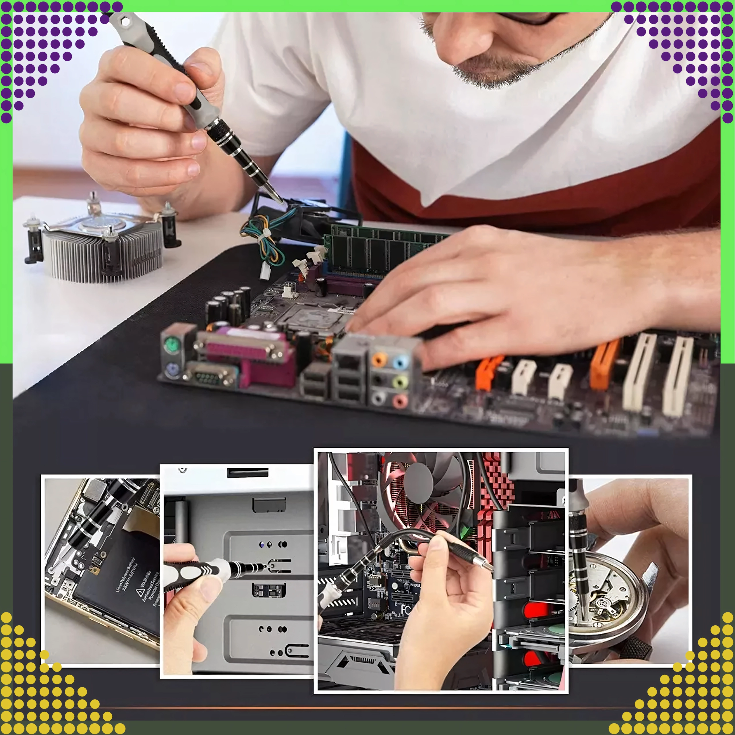 A comprehensive selection of bits and tools for electronics, watches, glasses, and household devices. All in one organized case for quick and efficient work.