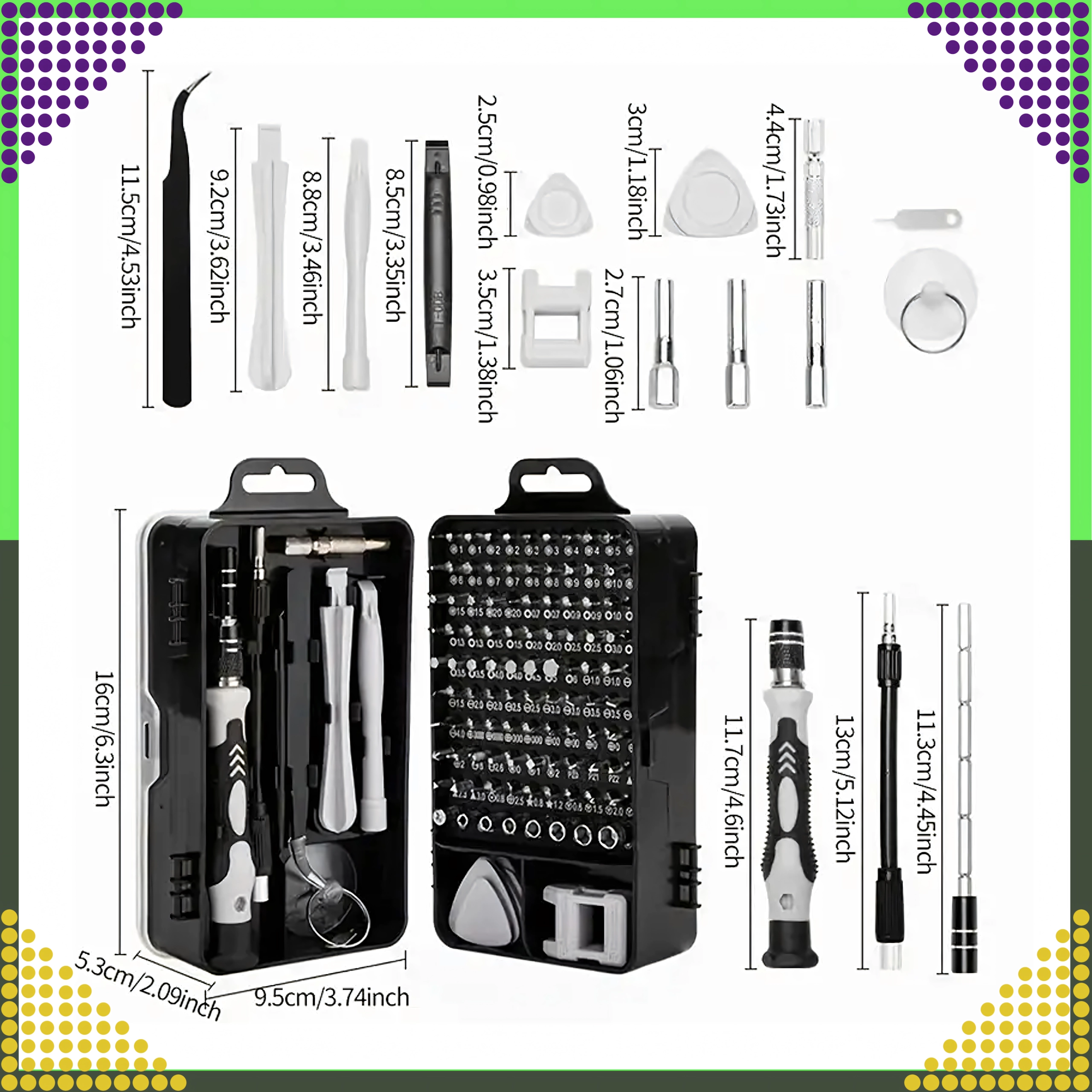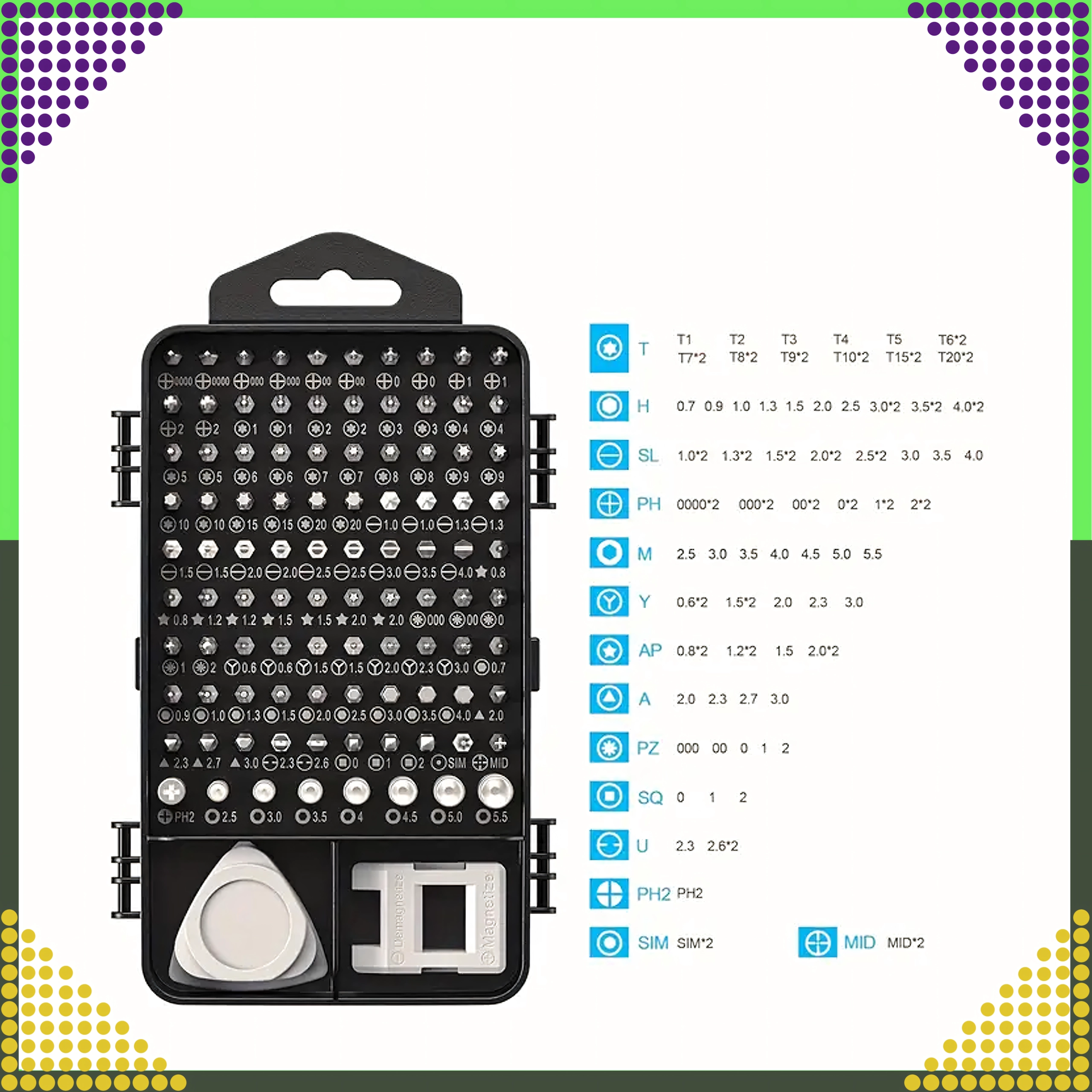 Looking for one set for everything? This 115-in-1 set combines a wide selection of precision bits with practical tools for safely opening devices. Everything is stored in a compact dual-wing case that ensures order, quick access, and easy portability.