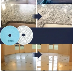 Final polishing of tiles, stone, and concrete with an even gloss and no scratches. Ideal for the last grinding step.