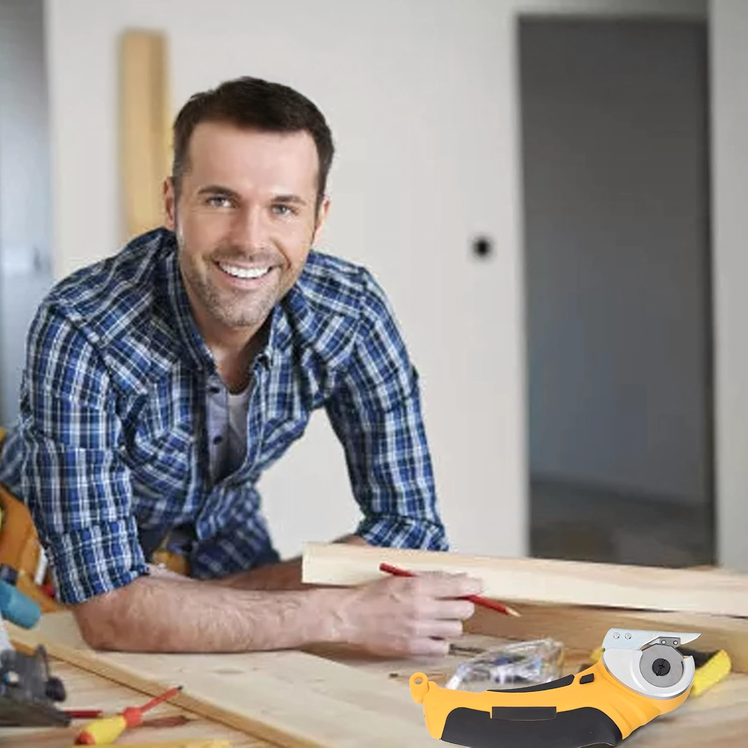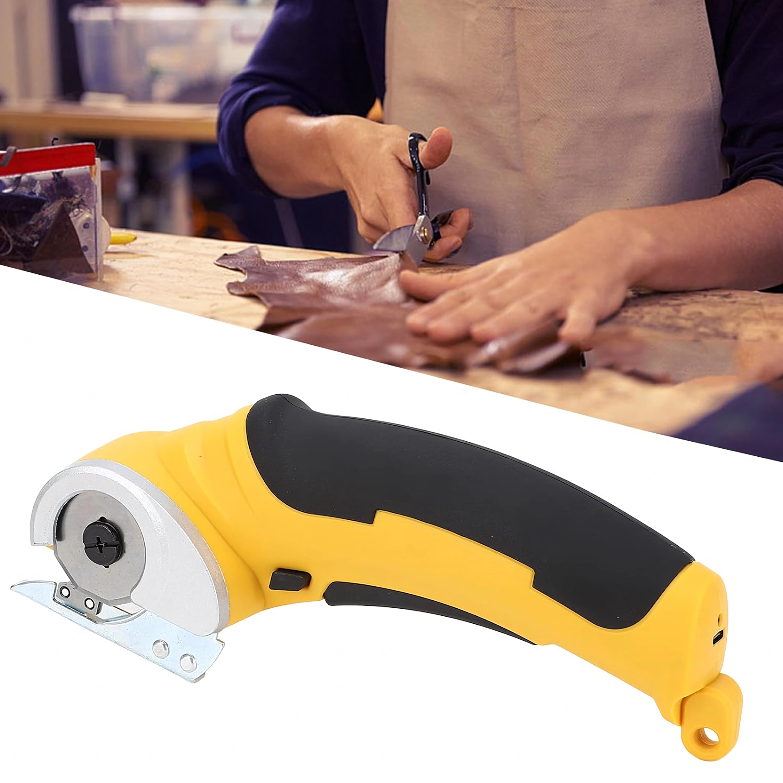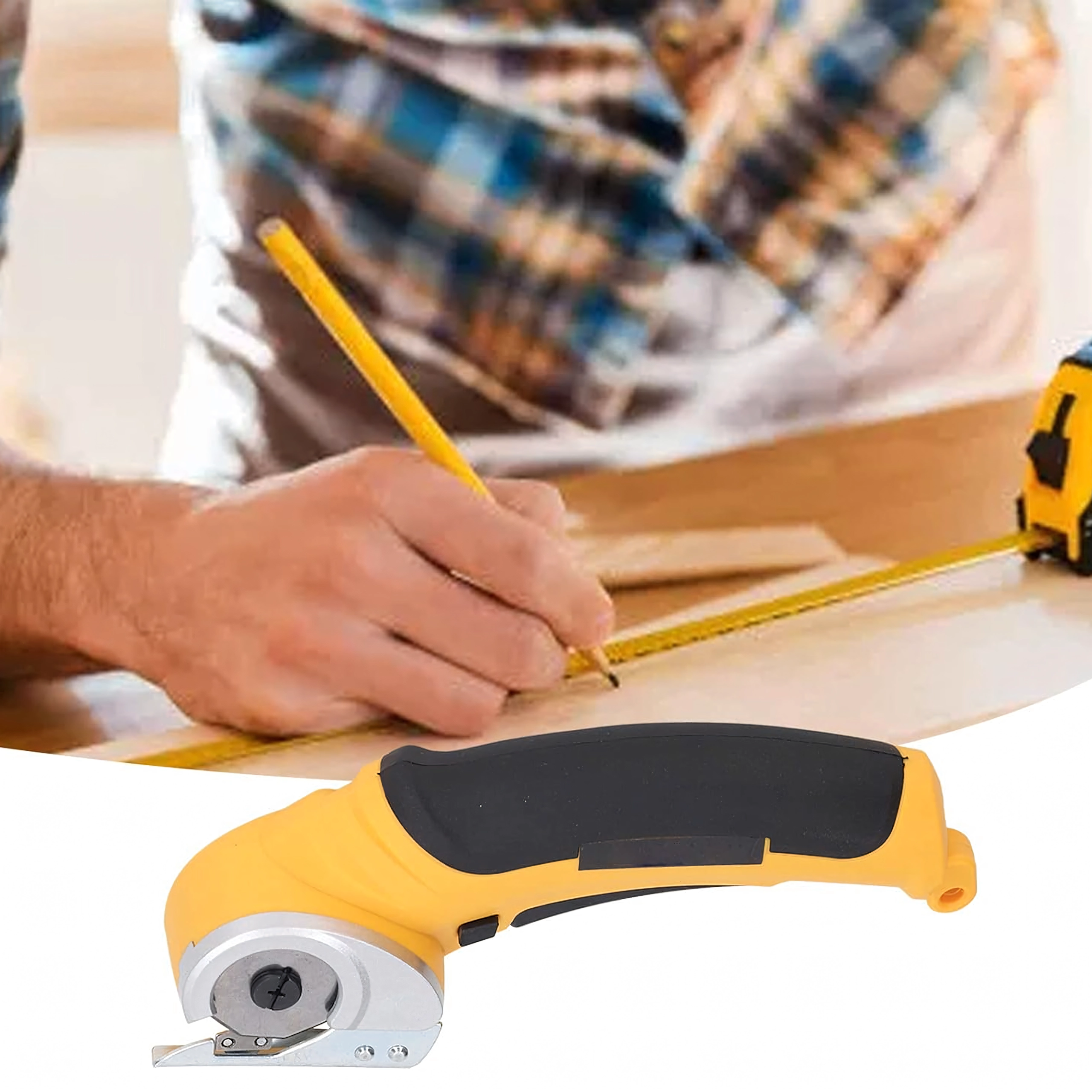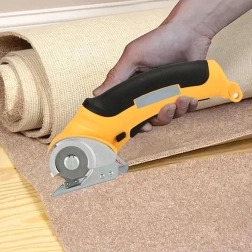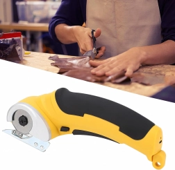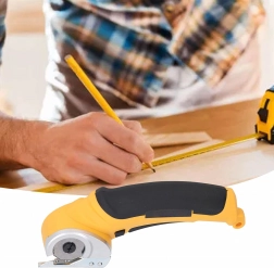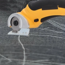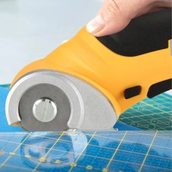 The circular blade with a protective guard ensures smooth, clean cuts in fabrics, leather, and cardboard. Ideal for long straight cuts along a ruler.