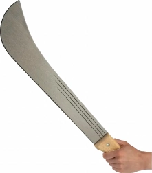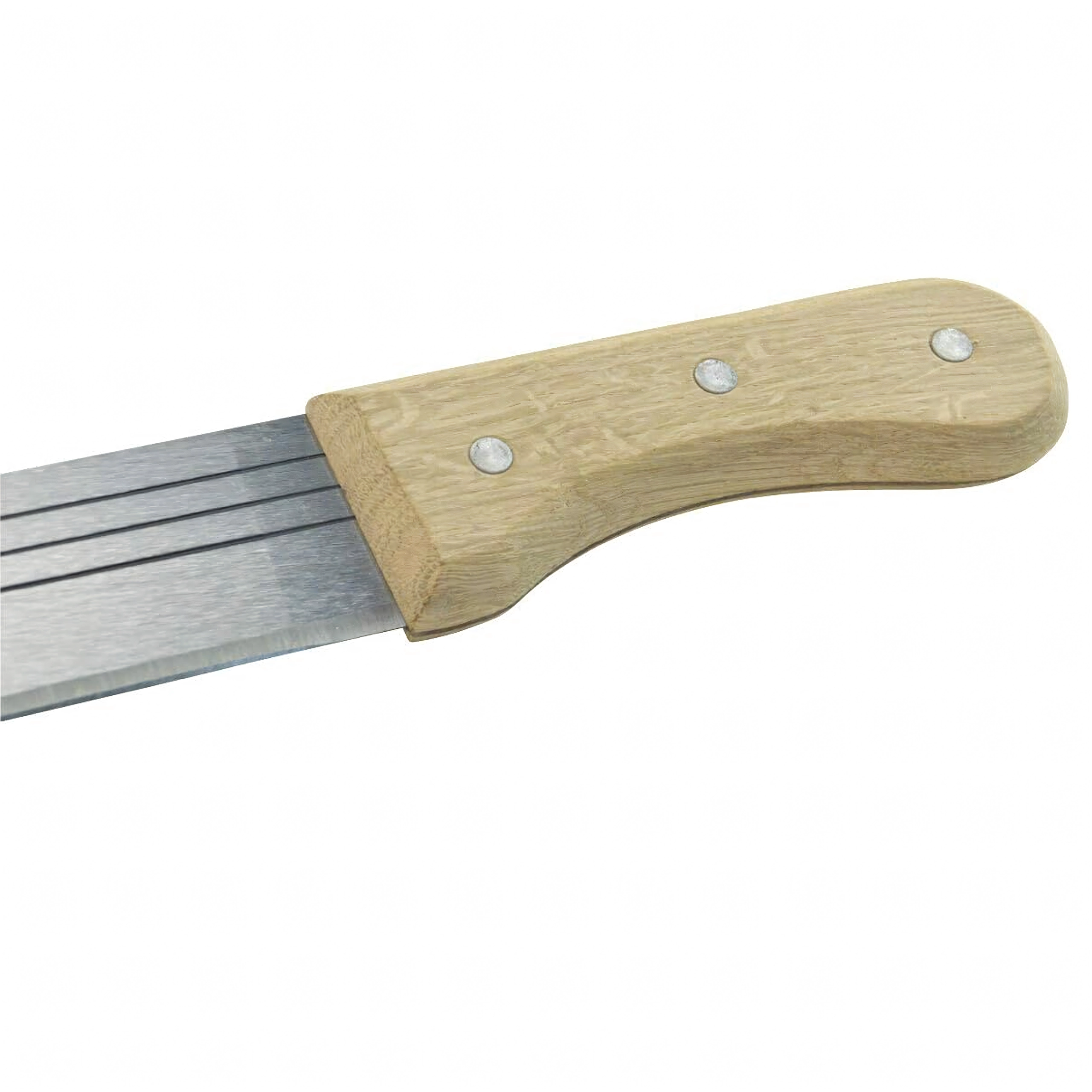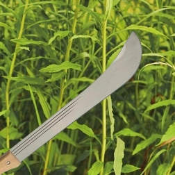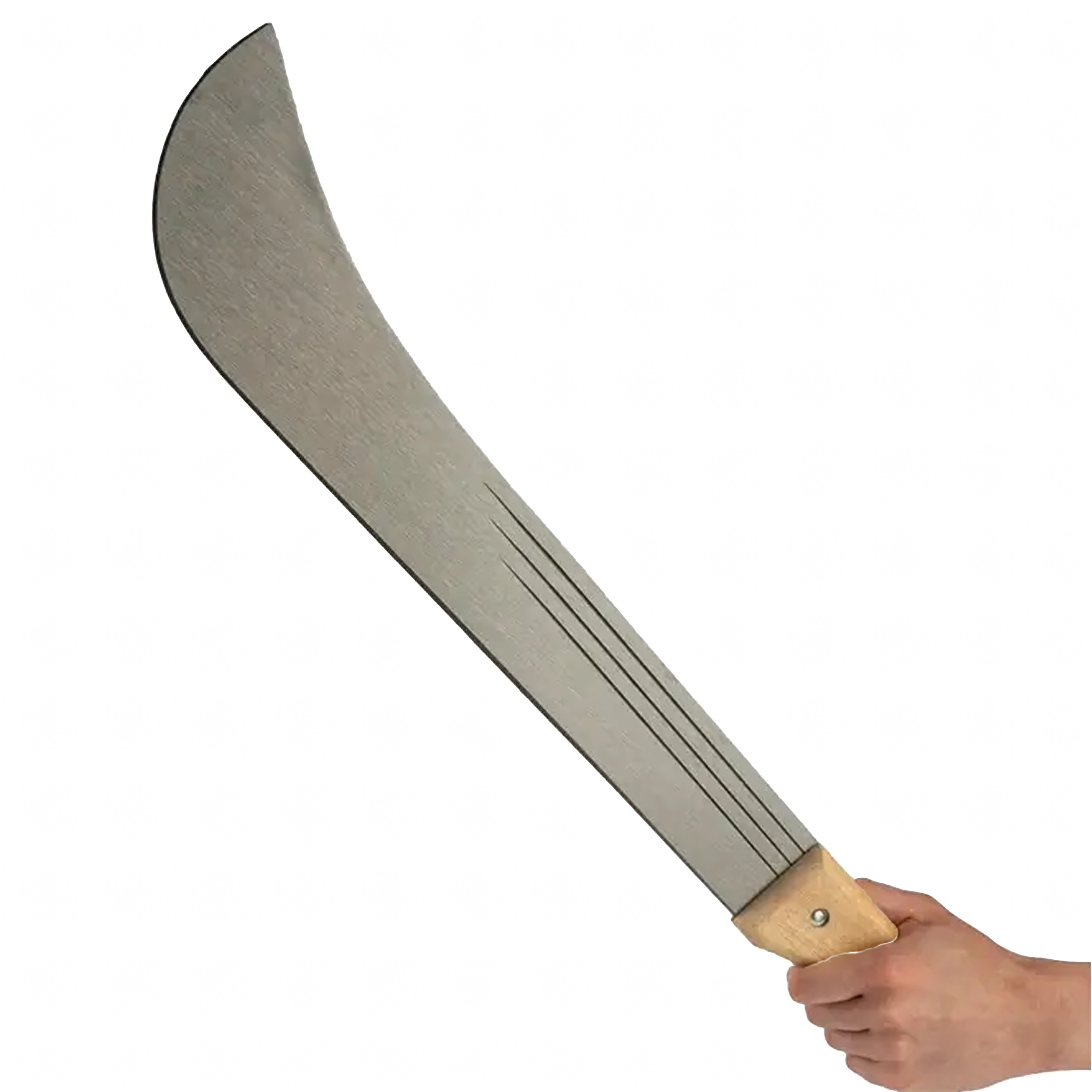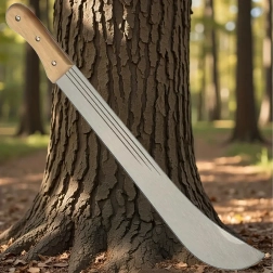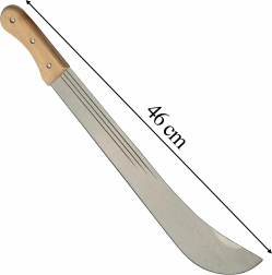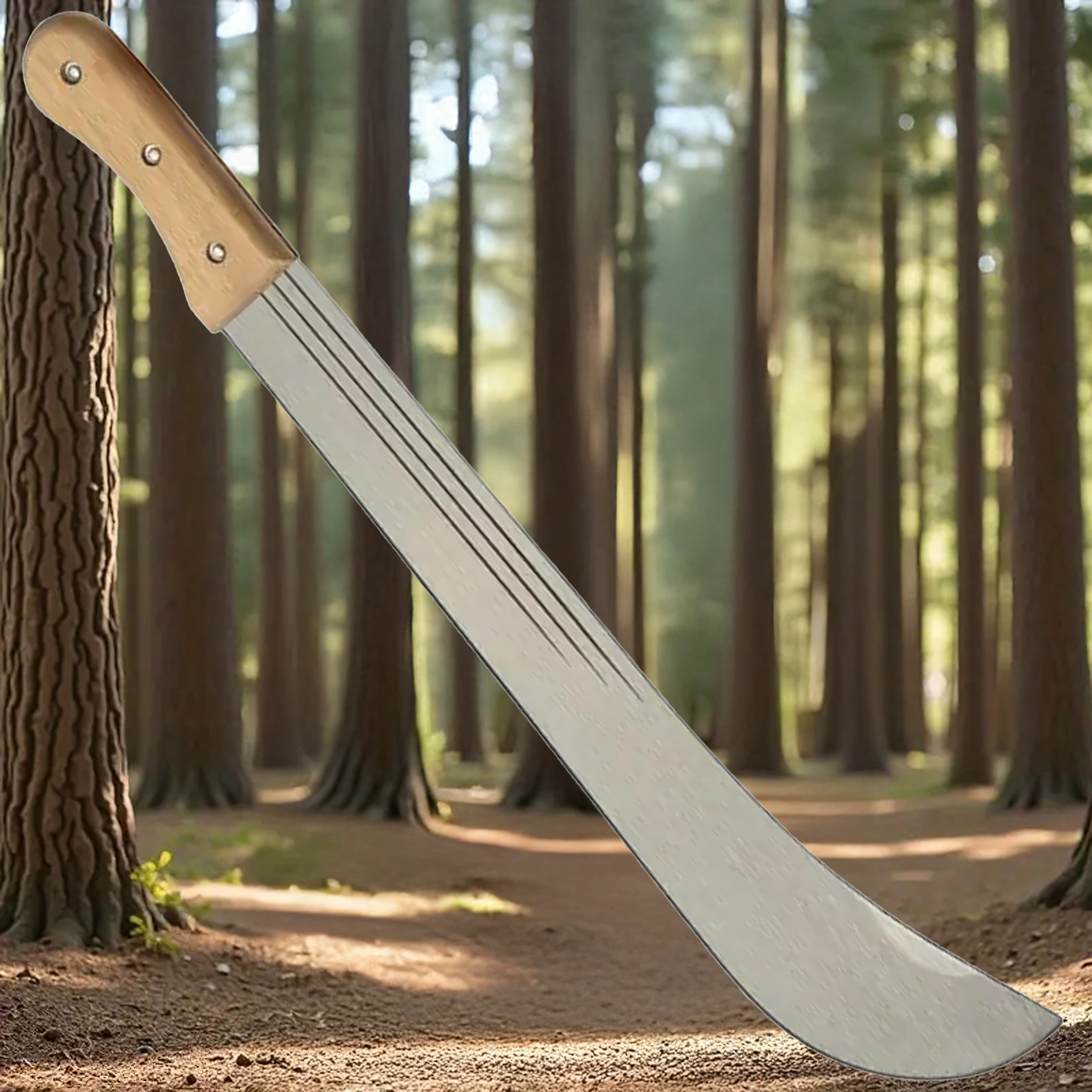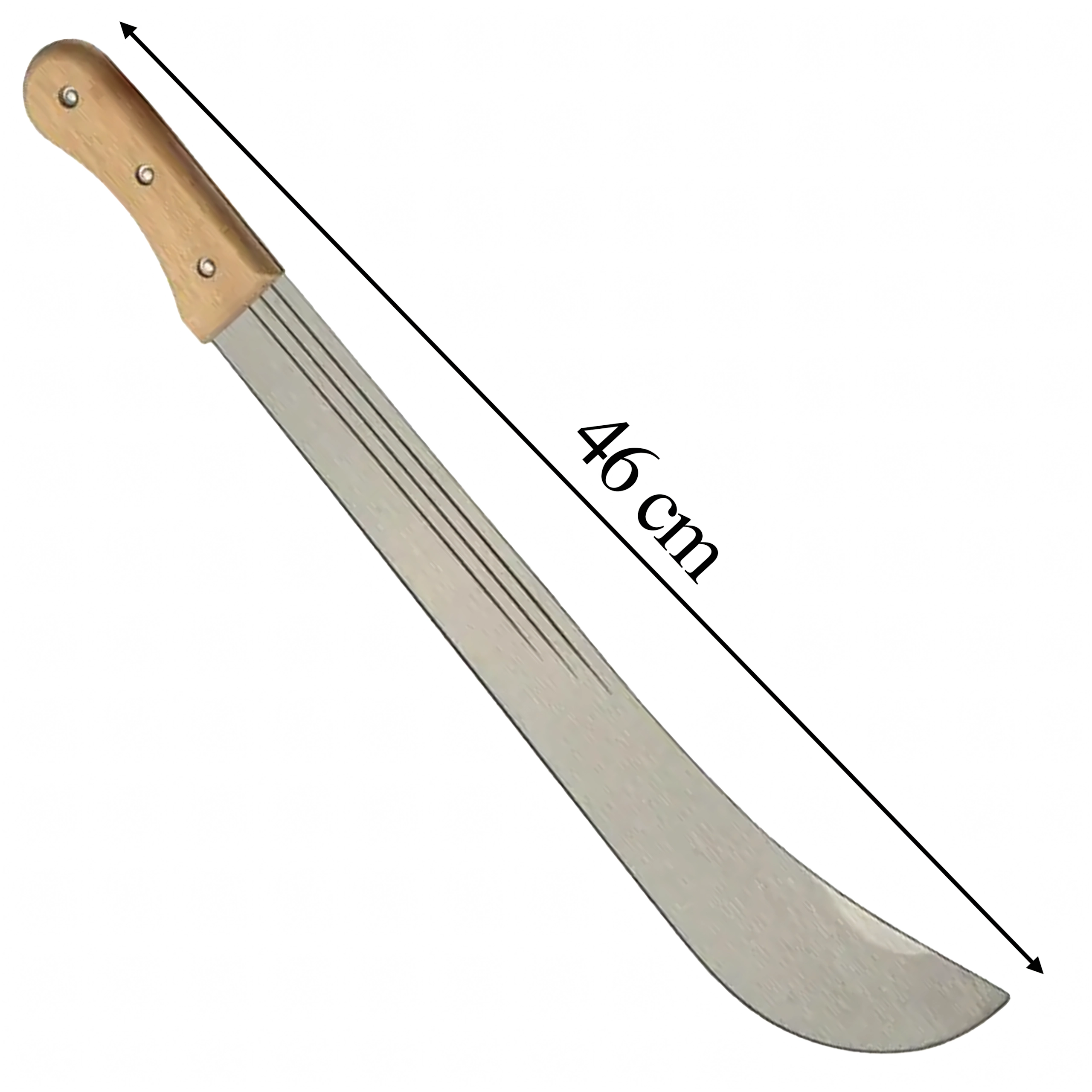The blade with longitudinal grooves reduces weight and improves material penetration, while the sturdy riveted handle ensures stability even during extended work. The machete is suitable for gardeners, forestry tasks, camping, and survival activities.