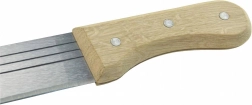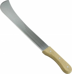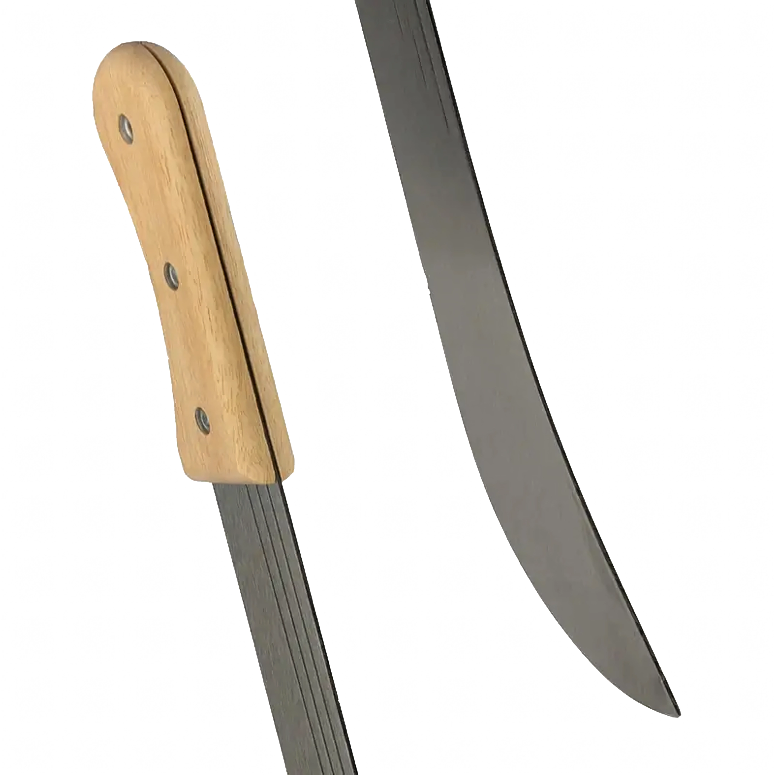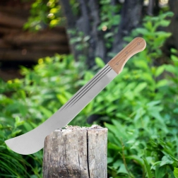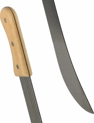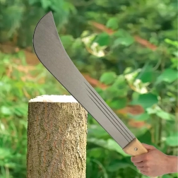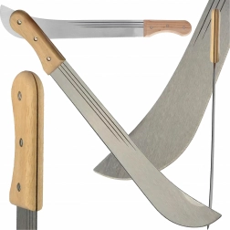 This hardened machete combines a long curved blade made of quality steel with a comfortable wooden handle for a secure grip. Thanks to its balanced construction, it offers smooth and effective cuts when clearing thickets, removing invasive growth, or quickly shaping vegetation.
