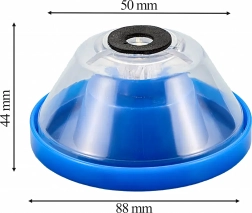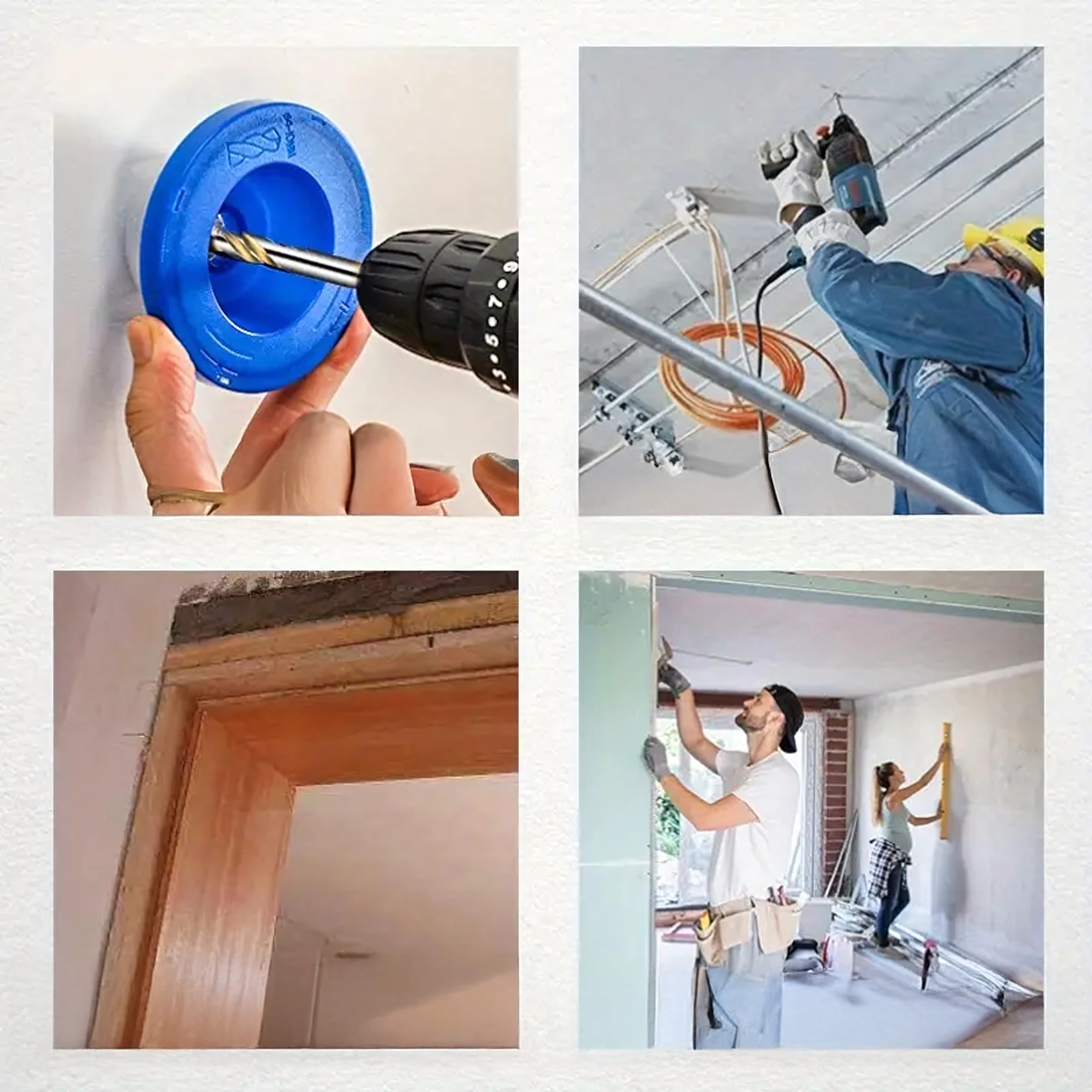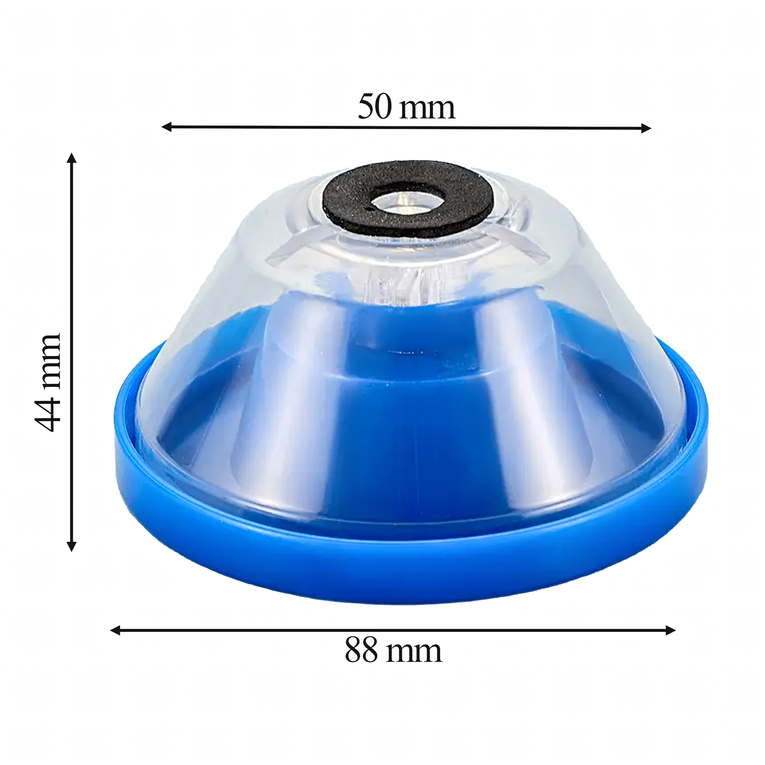 A practical aid for clean drilling into walls, ceilings, and wood. The transparent dome easily presses against the wall and, once the drill is inserted, captures dust at the source. Thanks to the rubberized seal, it adheres well to the surface and reduces debris escape.