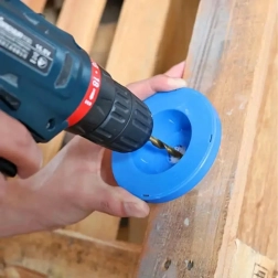 Just place it against the surface and drill – suitable for common drill bit diameters from 4 to 10 mm.