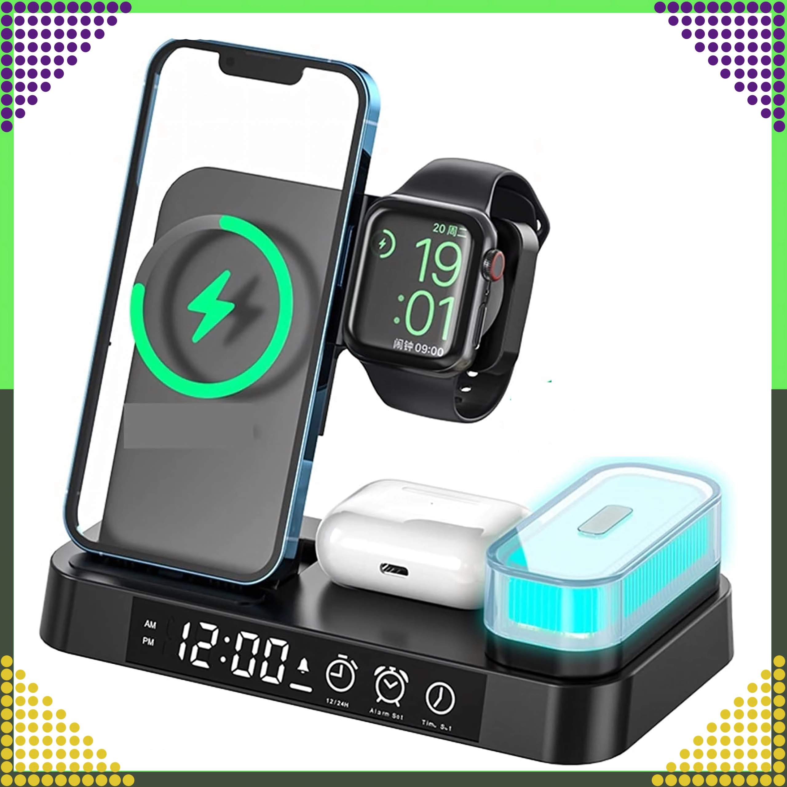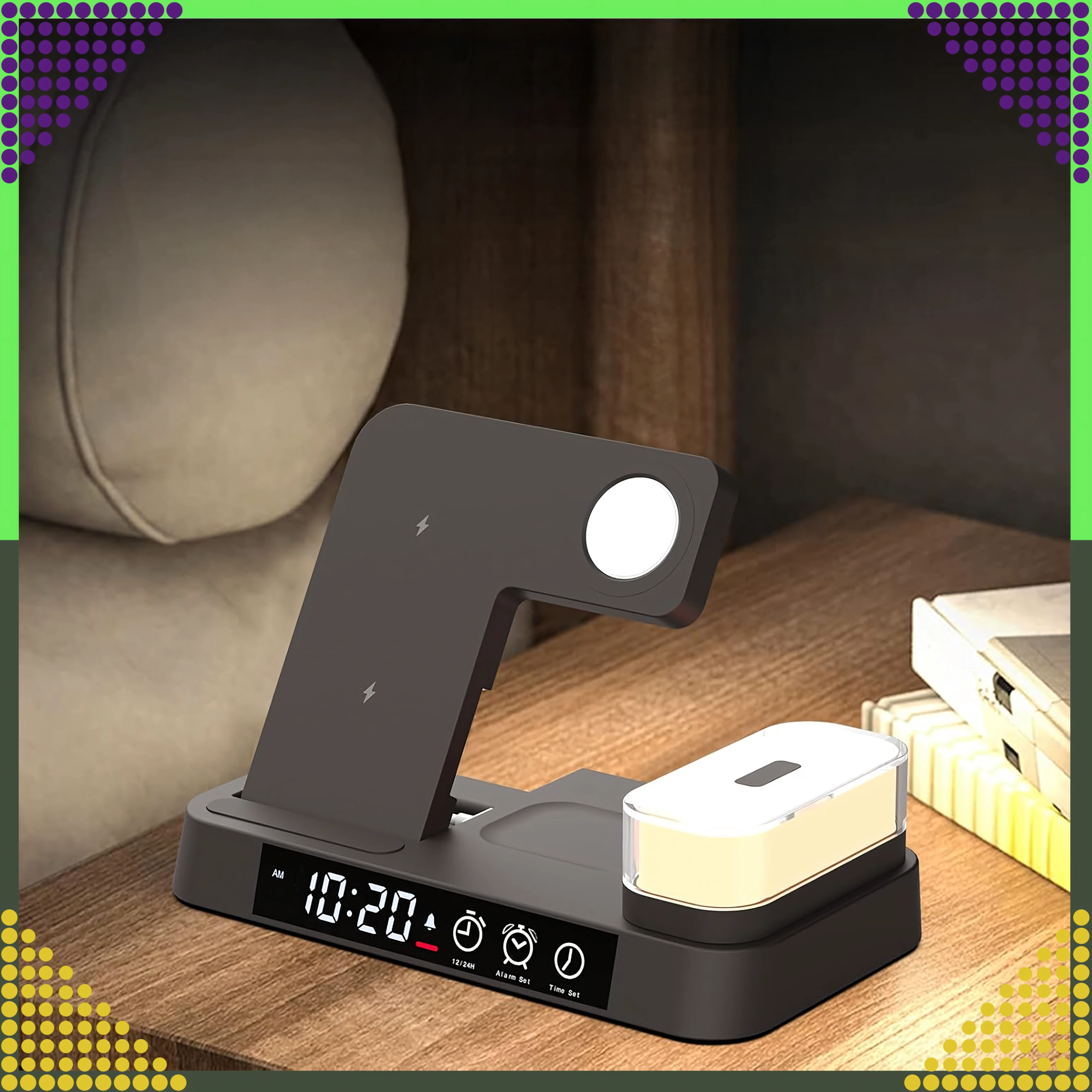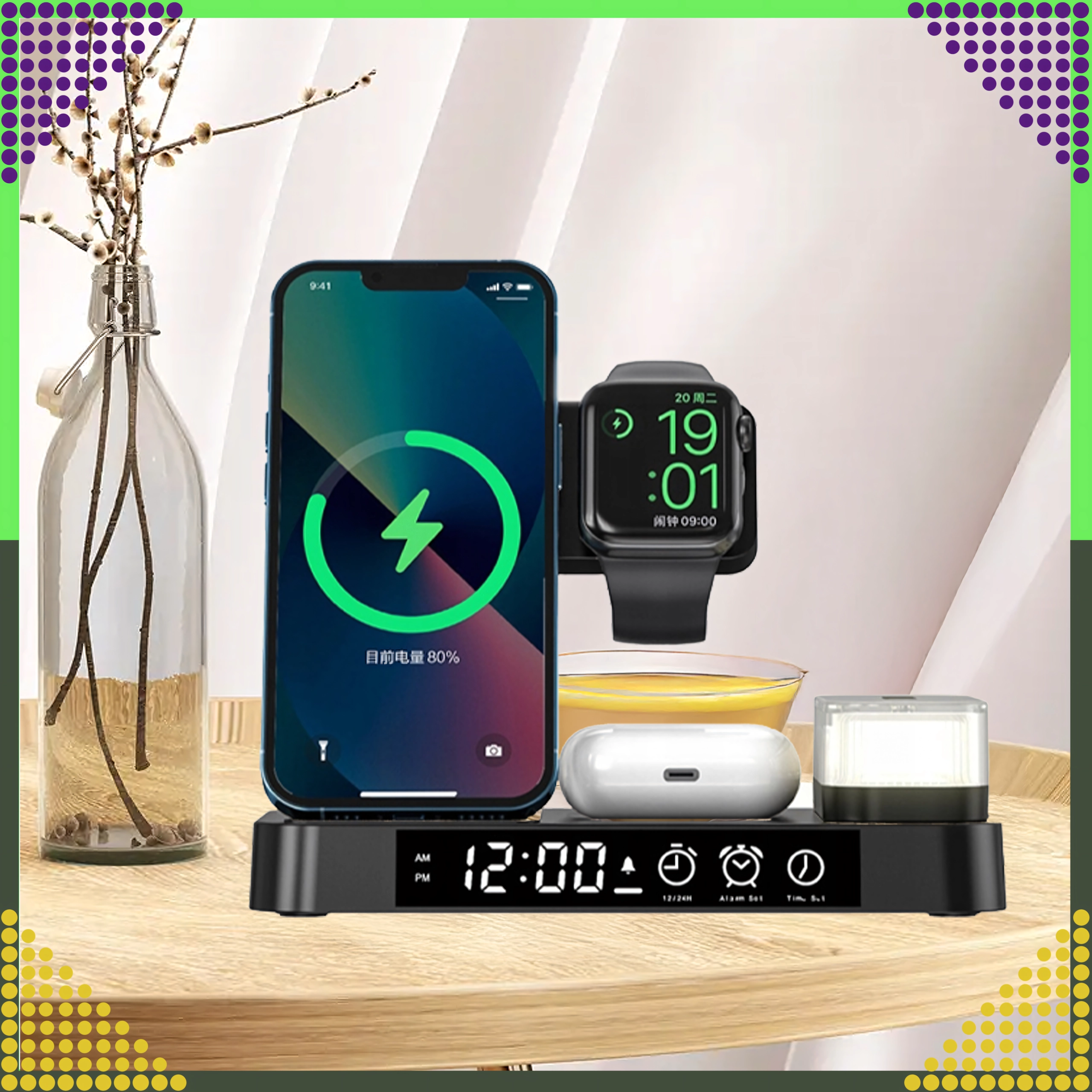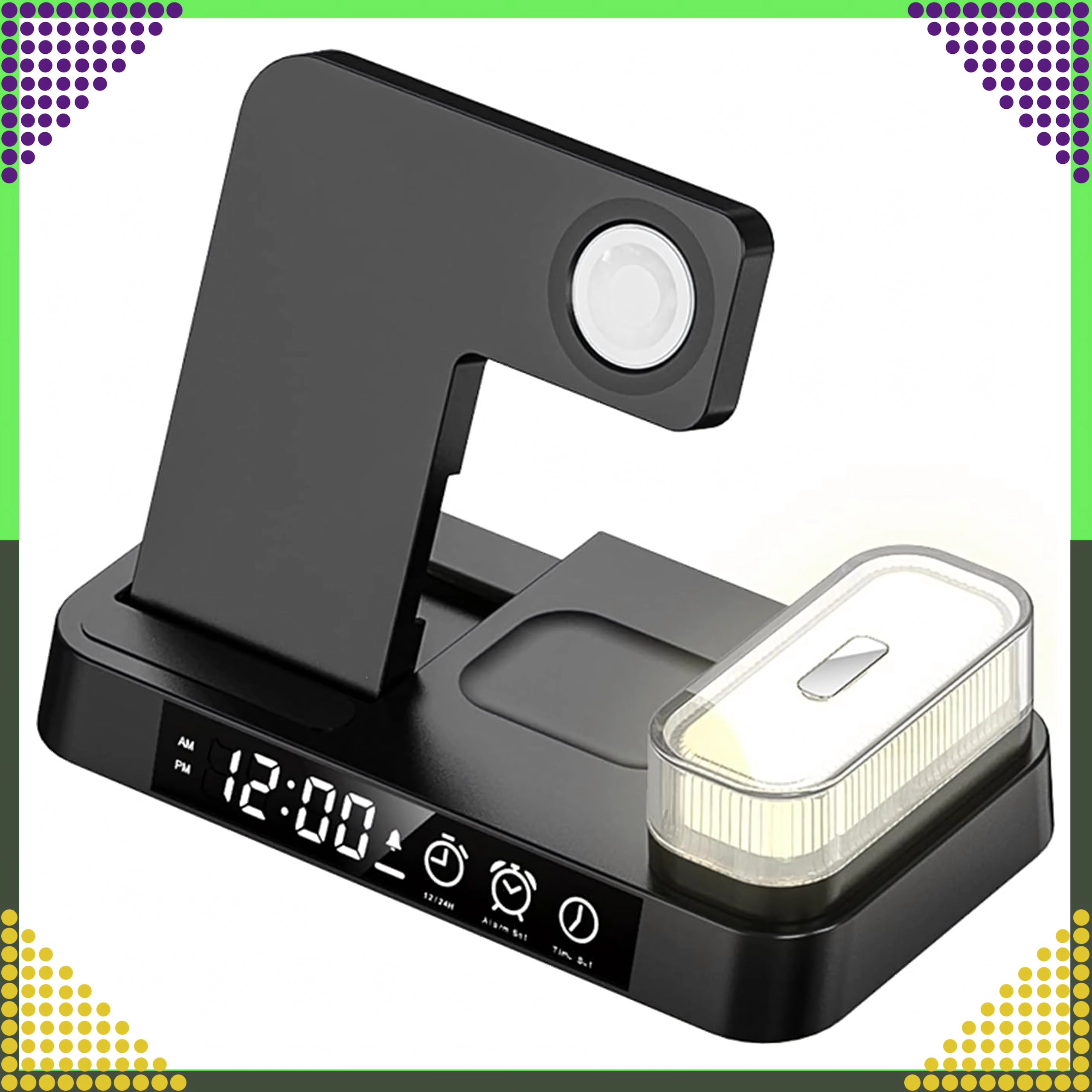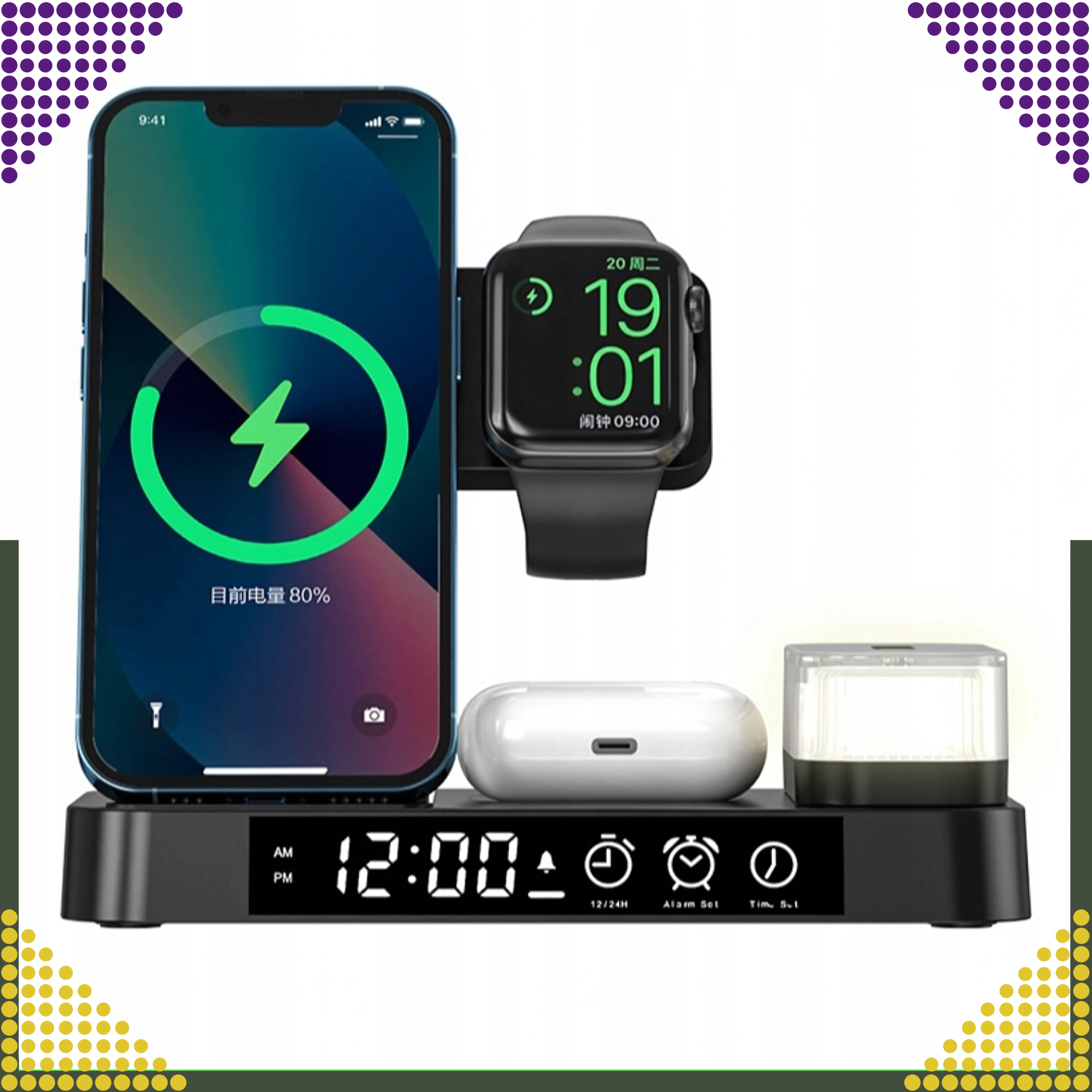 - 4-in-1: phone, watch, earbuds + clock/night light