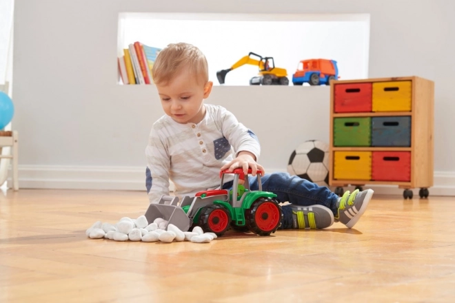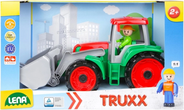 Colorful children's TRUXX tractor with a front loader will delight little builders. Thanks to its 35 cm length, movable bucket, tilting cab, and included figure, it offers plenty of fun at home and in the sandbox. Made of high-quality, flexible plastic and meets European safety standards.