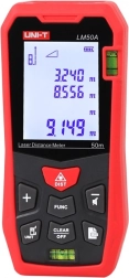 The UNI-T LM50A laser distance meter is a reliable tool for construction, interior work, and technical supervision. With a 50 m range, fine 0.001 m resolution, and accuracy of ±(2 mm + 0.00005 × D), it delivers fast and precise results both on-site and indoors. The backlit 2" LCD ensures excellent readability, and the built-in horizontal and vertical spirit levels help with precise leveling.