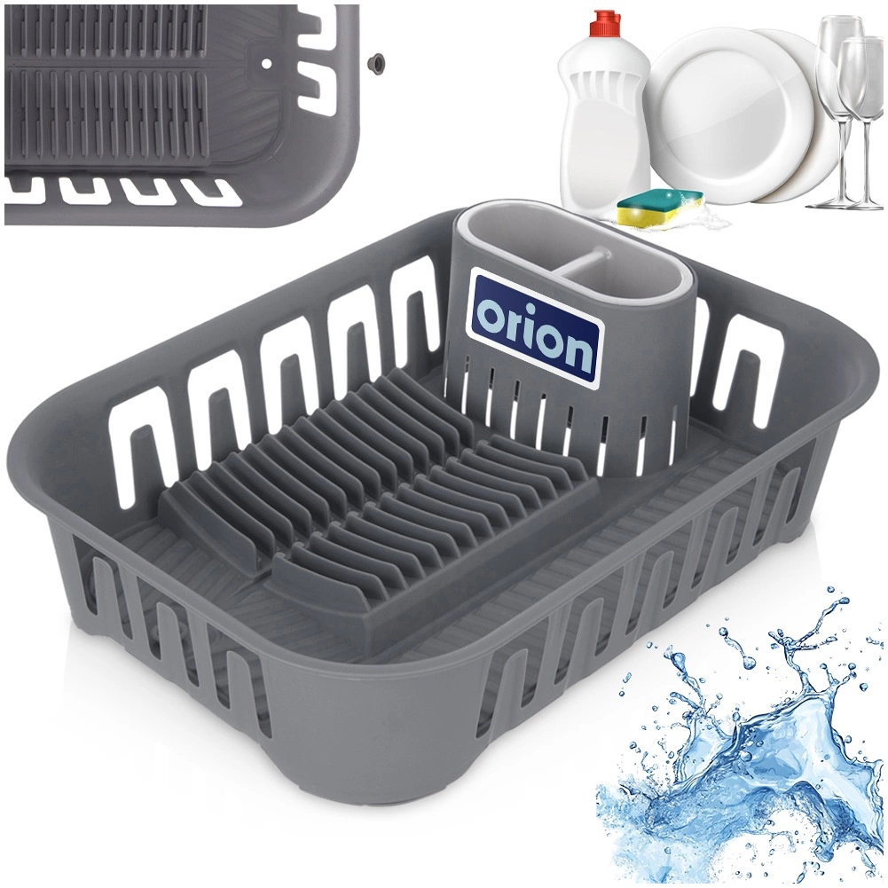 Practical dish drainer with a removable cutlery box and space for up to 13 plates. Thanks to the drain with stopper, it effectively channels water away and protects the countertop. A stable, non-slip base and easy maintenance make it an ideal choice for the kitchen, cottage, or caravan.