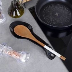 This practical tray for spoons and ladles helps keep your work surface clean while cooking. The shaped dish catches drips and sauce residue, so you avoid sticky stains on the countertop and around the stove. The minimalist, modern design in black fits perfectly into any kitchen.