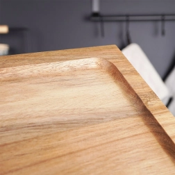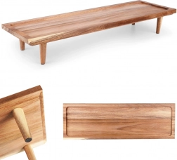 This versatile serving board with legs stands out for its clean design and functionality. Thanks to the solid acacia wood, it resists moisture and warping, making it ideal for everyday use in the kitchen and for entertaining. The raised edges keep food in place and make carrying easier.