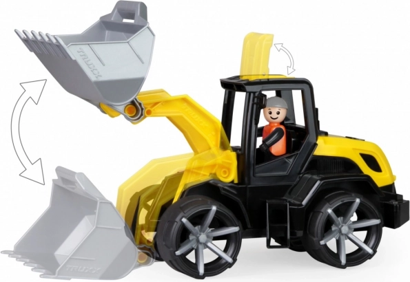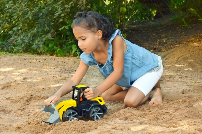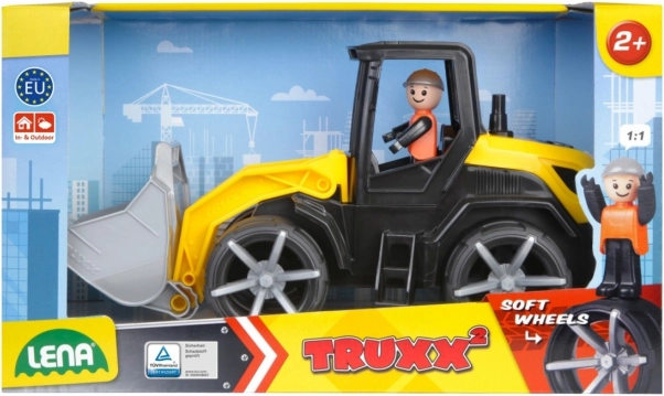 A robust kids’ bulldozer LENA TRUXX 2 for indoor and outdoor play delights with soft, quiet wheels, an opening cab, and a movable bucket with handle. Includes a driver figure, durable steel axles, and safe design. Made in Europe, TÜV certified, suitable from 2 years.