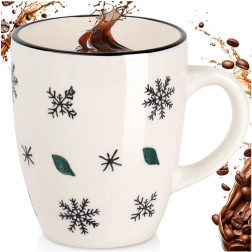A stylish ceramic mug with a snowflake motif and a thin black rim, ideal for everyday use. With a capacity of 350 ml, a comfortable handle, and dishwasher- and microwave-safe design, you can enjoy tea, coffee, or hot chocolate anytime. The winter design sets a festive mood and also makes a great gift.