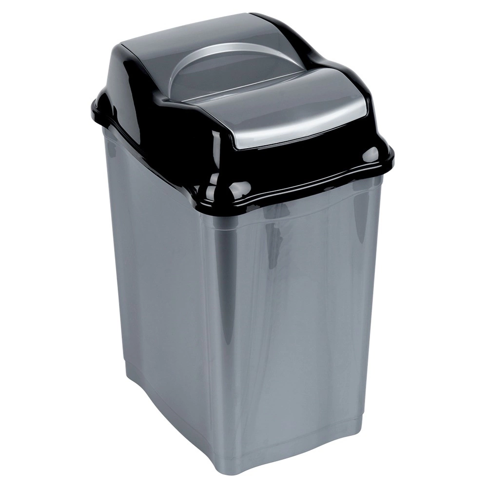 Practical plastic trash bin with a capacity of 28 l and a swing lid for convenient and hygienic waste disposal. Thanks to the durable and lightweight plastic in gray with a black lid, it fits kitchens, bathrooms, and offices, helping to reduce odors and keep things clean.