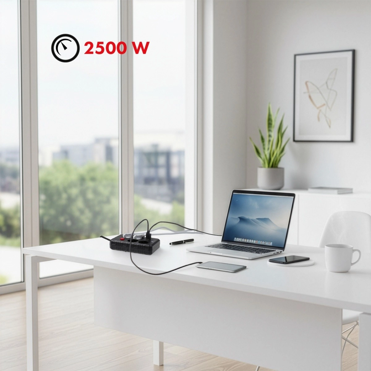 - High load capacity up to 2500 W for reliable operation of home and office appliances.