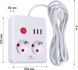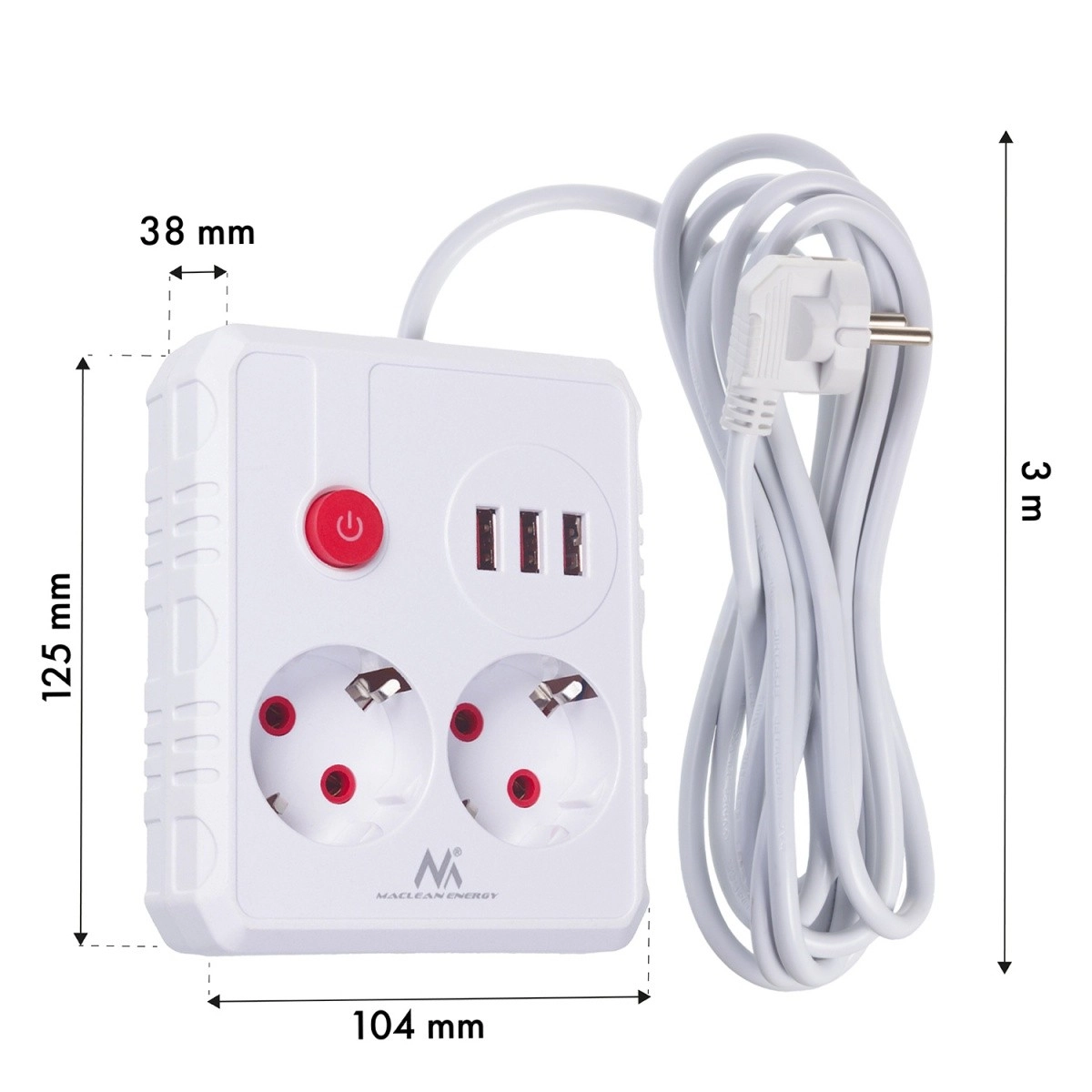 This modern power strip combines classic sockets with three USB ports, so you can easily connect a desk lamp, laptop, or TV while charging your phone or headphones—no extra adapters needed. Thanks to its compact dimensions and clean white finish, it fits any interior.
