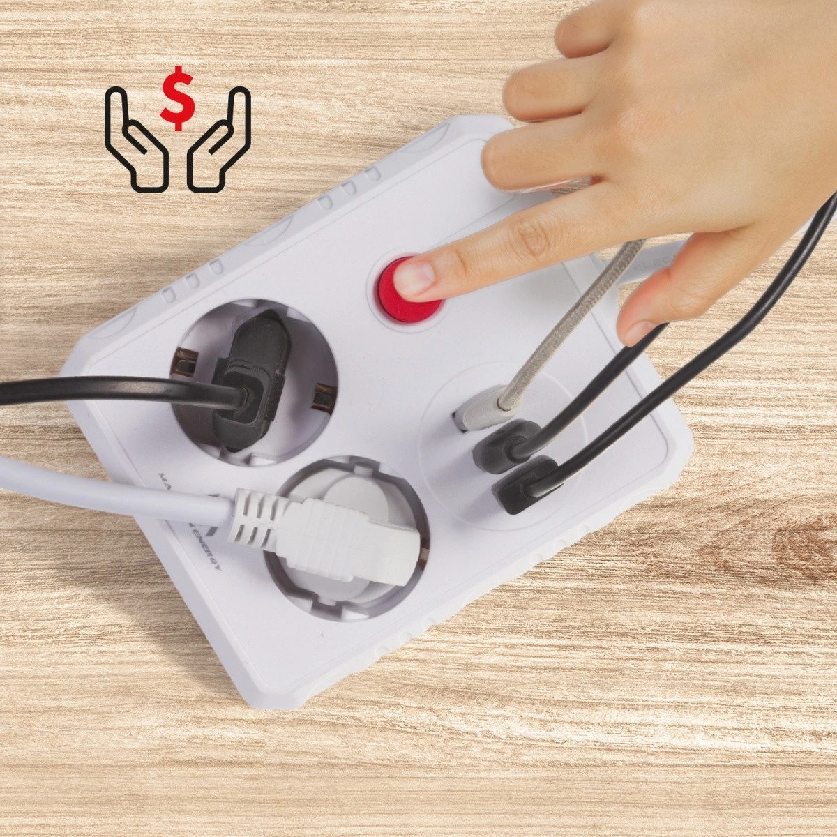 Power appliances while charging up to three devices via USB without extra adapters. Ideal for a desk, TV corner, or bedside table.