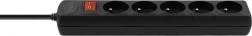 Five grounded Schuko sockets and an illuminated main ON/OFF switch for convenient and energy-saving control of all connected devices.