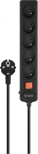Reliable surge protector strip with 5 grounded outlets, an automatic circuit breaker, and a main ON/OFF switch. Thanks to a varistor with a thermal fuse, it protects sensitive electronics from voltage spikes, while the 1.8 m copper power cable ensures long service life and stable performance.